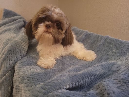 We were so excited to meet our new puppy and Amanda was so go to work with. She did a video chat with us and met us half way between to deliver our little man. We fell in love immediately! His name is now Gus! Gus is so good with people and other dogs. He's a snuggler and lover. He had his first vet appointment today and he weighs in at 4.5 lbs. at 17 weeks. He was so good, even the vet and staff commented on it. We love him so much and are so thankful for the quality pets that Amanda raises. I would recommend her to anyone who's looking for a precious little Shih Tzu