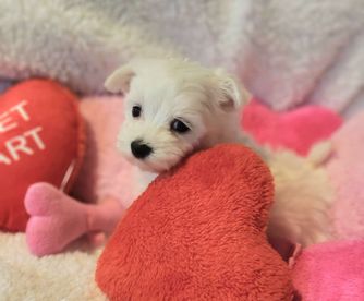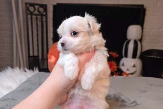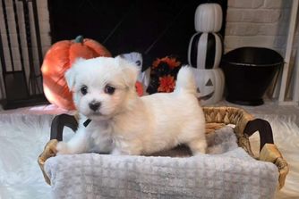Our Maltese puppies are white. Colors will vary depending on the parent dogs.