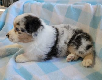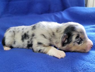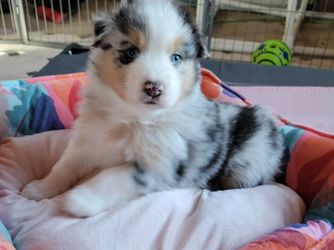 Our puppies include red merle and blue merle. Colors will vary depending on the parent dogs.