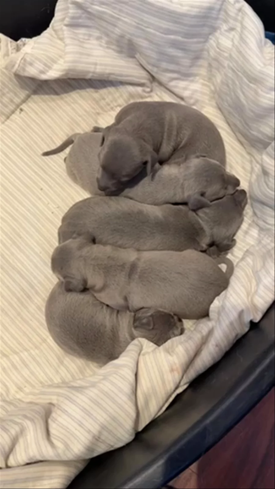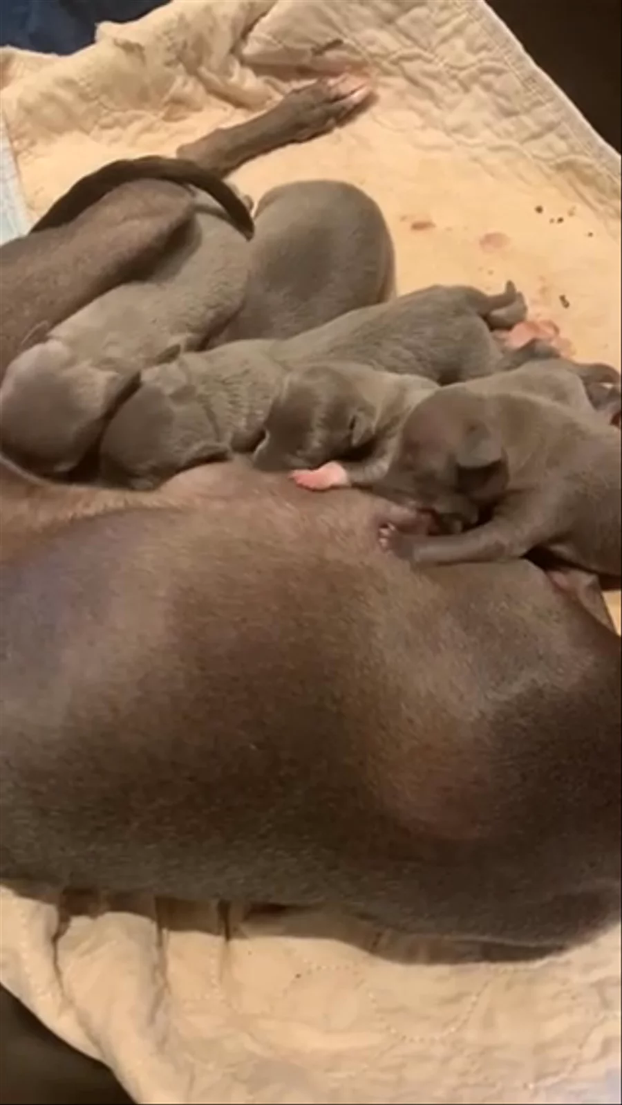 Yes. There are 4 puppies in this litter, 2 were reserved before birth. Mama Resa is in the middle, the grand dame is the white faced Zin at 17 years of ago and Navy is the solid blue on the left.