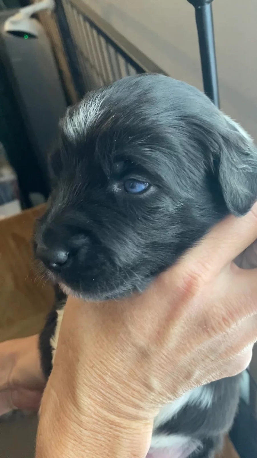 Milo is a very gentle natured puppy! He loves his toys and his people! He loves to go on car rides and is our little shadow! He is a very content,low drive, happy puppy! He is health tested and is clear from all genetic diseases for his breed! He has the most stunning blue eyes and is red factored! We cain’t wait to see his amazing pups in 2026!