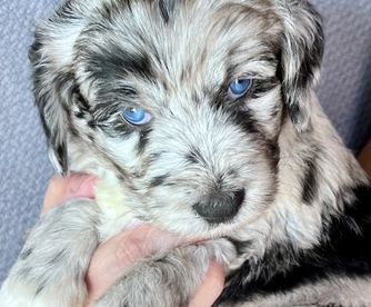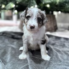 We look forward to his pups as we strive to bring a mini Aussiedoodle to those searching for a more miniature puppy! We should also receive many colors from this stud including blue merle, black bi, black tri, red merle, red bi, and red tricolors.