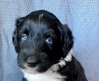 Our Double Doodle puppies include merle, brown, phantom, blue, and black. Aussiedoodle puppies include blue merle, black and white, and black tri-color. Colors will vary depending on the parent dogs.