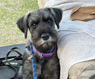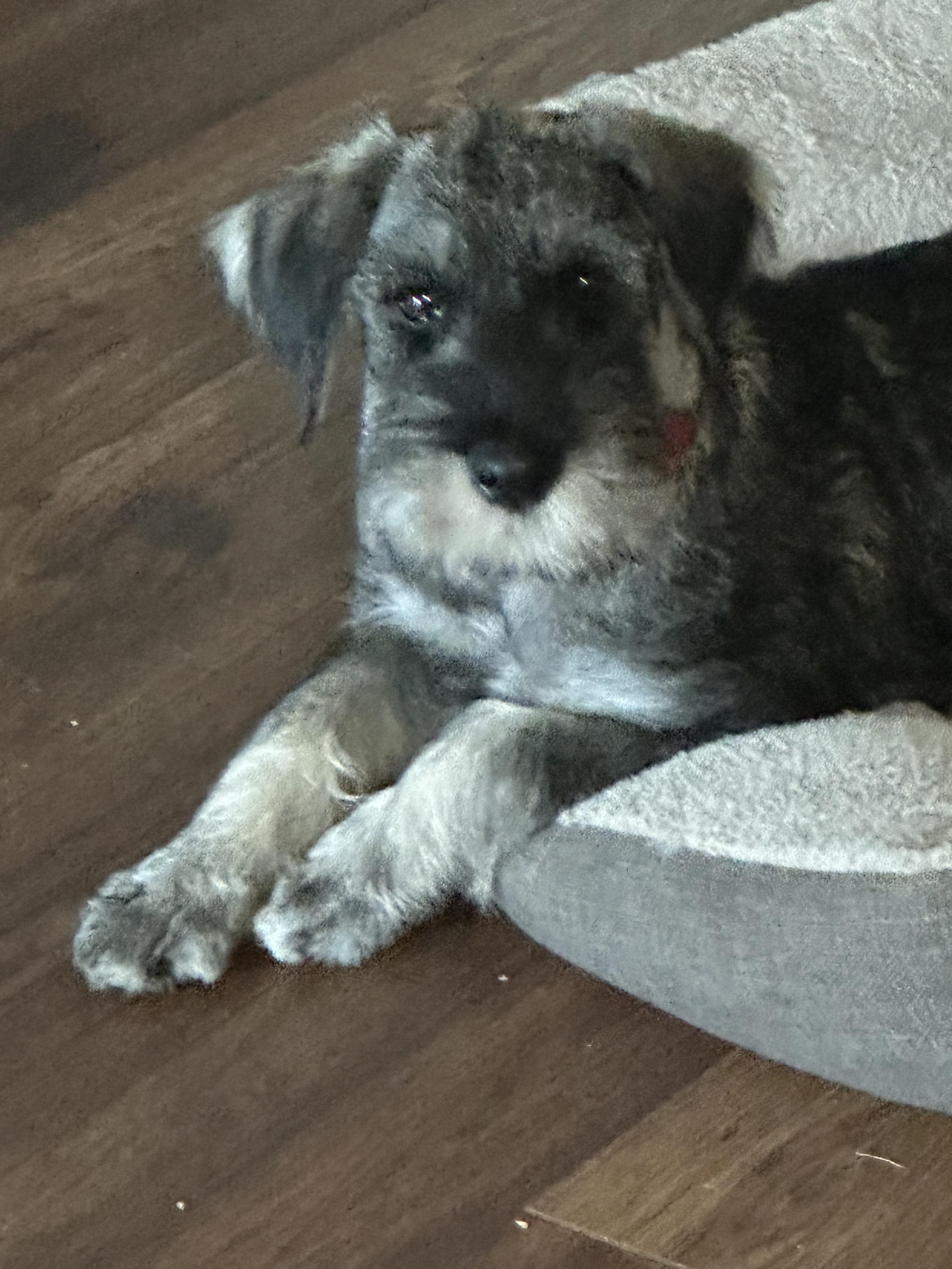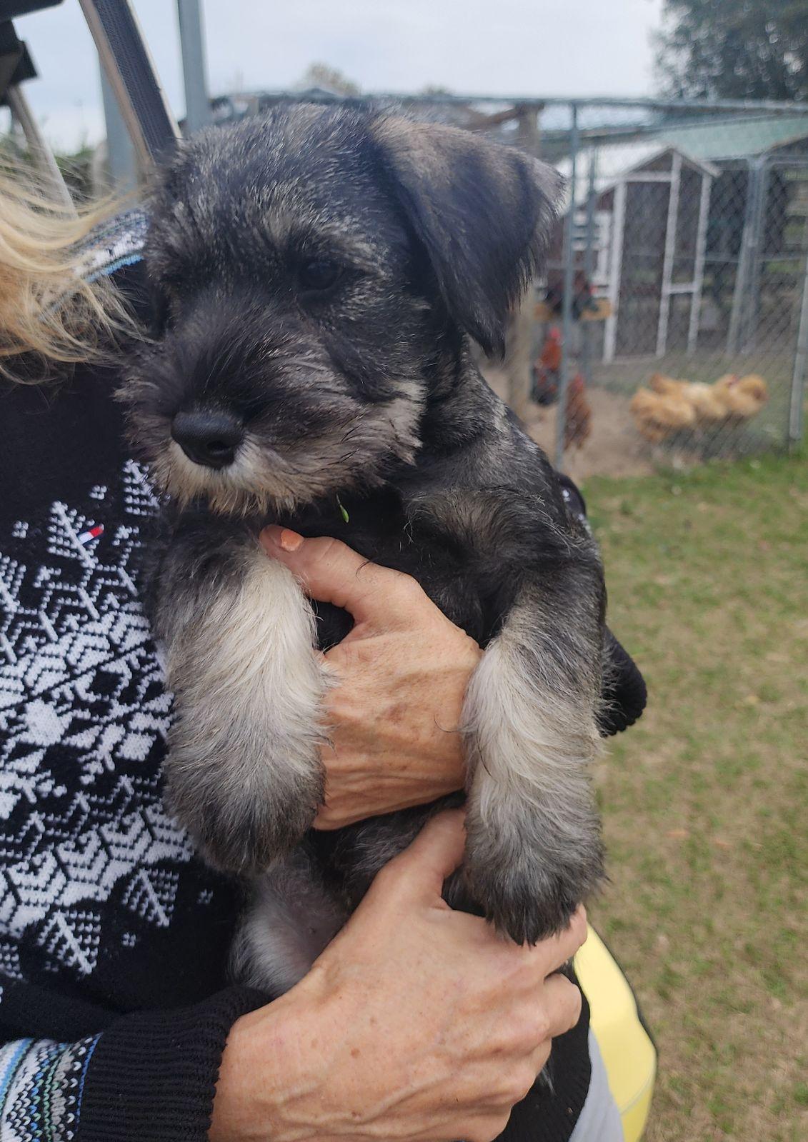 Amazing Standard Schnauzers, raised a beautiful sweet Schnauzer. Victoria, the breeder, was easy and helpful to deal with. Our Schnauzer flew all the way from Florida to Montana, with the help of a flight nanny that Victoria had suggested. She was potty trained, crate trained, but the best part about her is that she has been loved. Victoria was not just a breeder but spent time caring for and teaching her puppies, and it shows. Our Schnauzer is a great hunter she has cleared out the barn. She loves her new family and goes everywhere with us. We are so thankful for her.