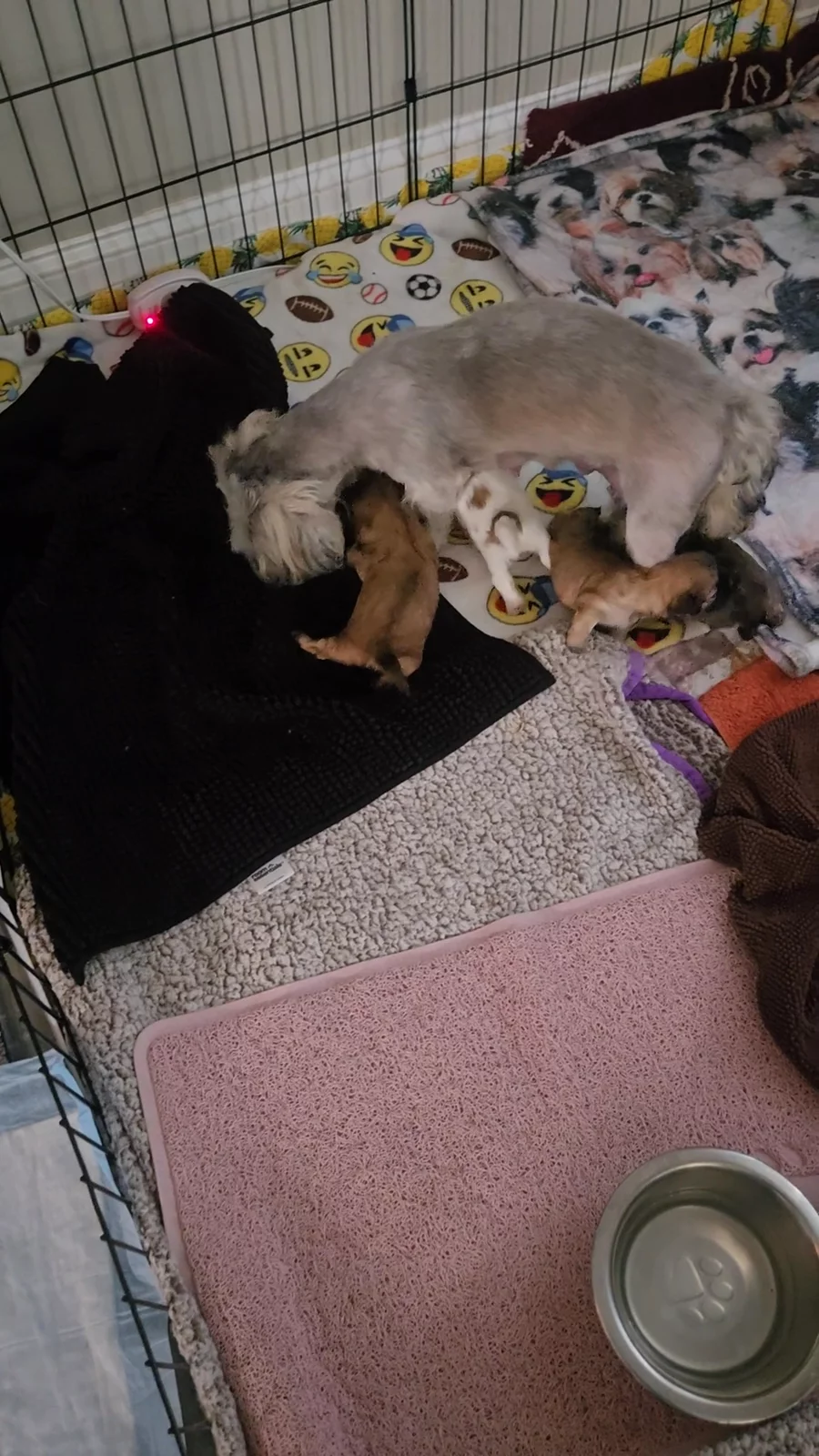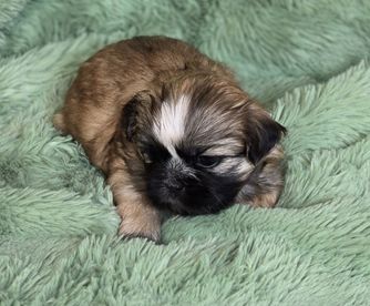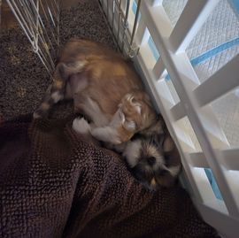 Amber breeds top-of-the- line Shi Tzus - she keeps the puppies with their siblings and parents for the first 8 wow of their lives. I believe this builds happy, well-adjusted and affectionate dogs. Beyond happy with our experience with Amber!!!