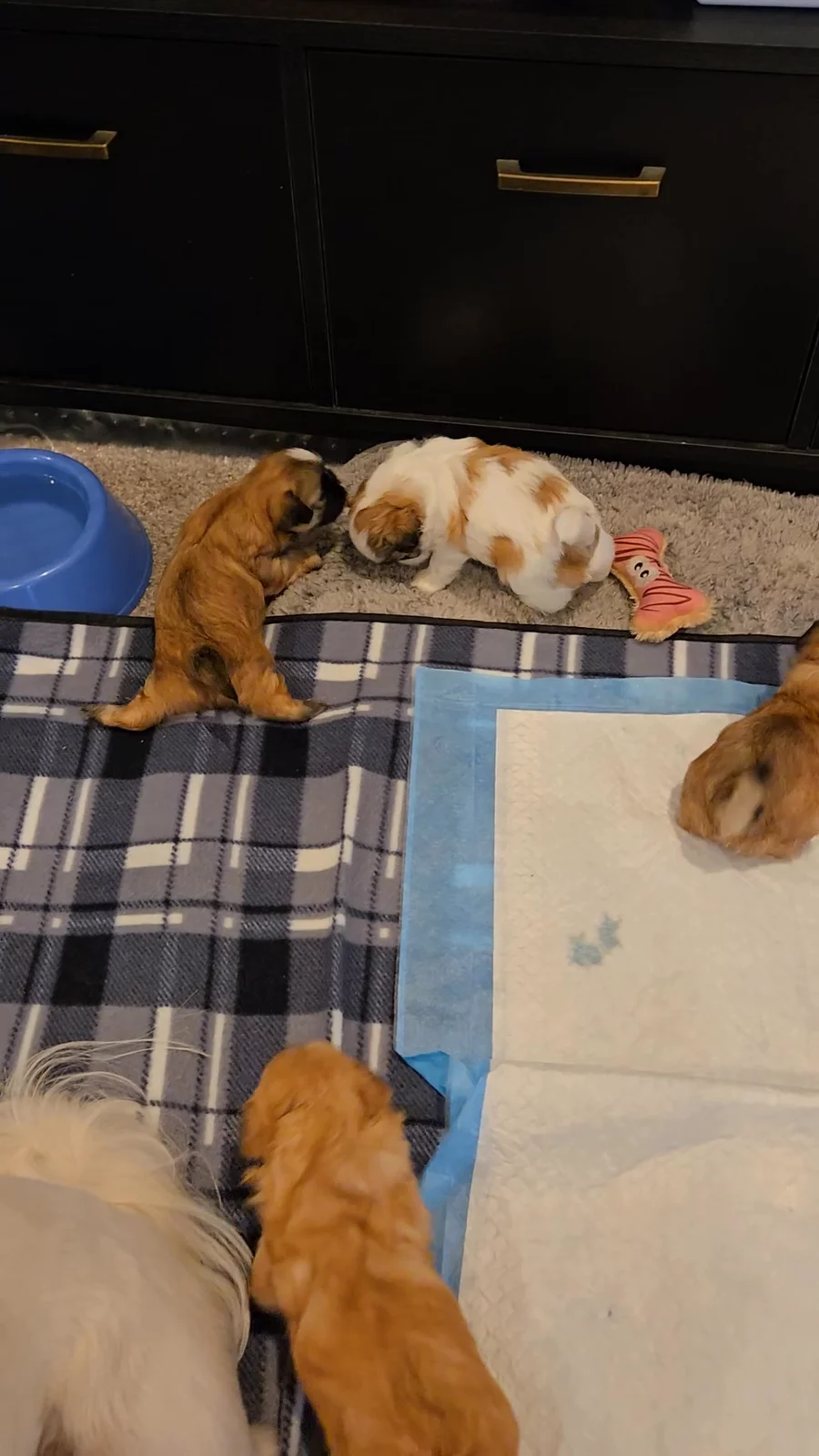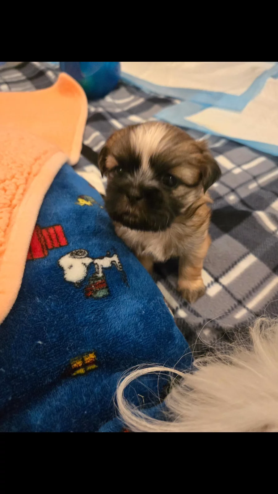 Lucy is a gentle soul who loves to watch everything that is going on and answers your questions with the cutest head tilt. She loves her laser pointer and her other shih tzu buddies. She prefers to sleep on my chest every night over any of the 5 beds available. 🥰 Lucy is CKC registered.