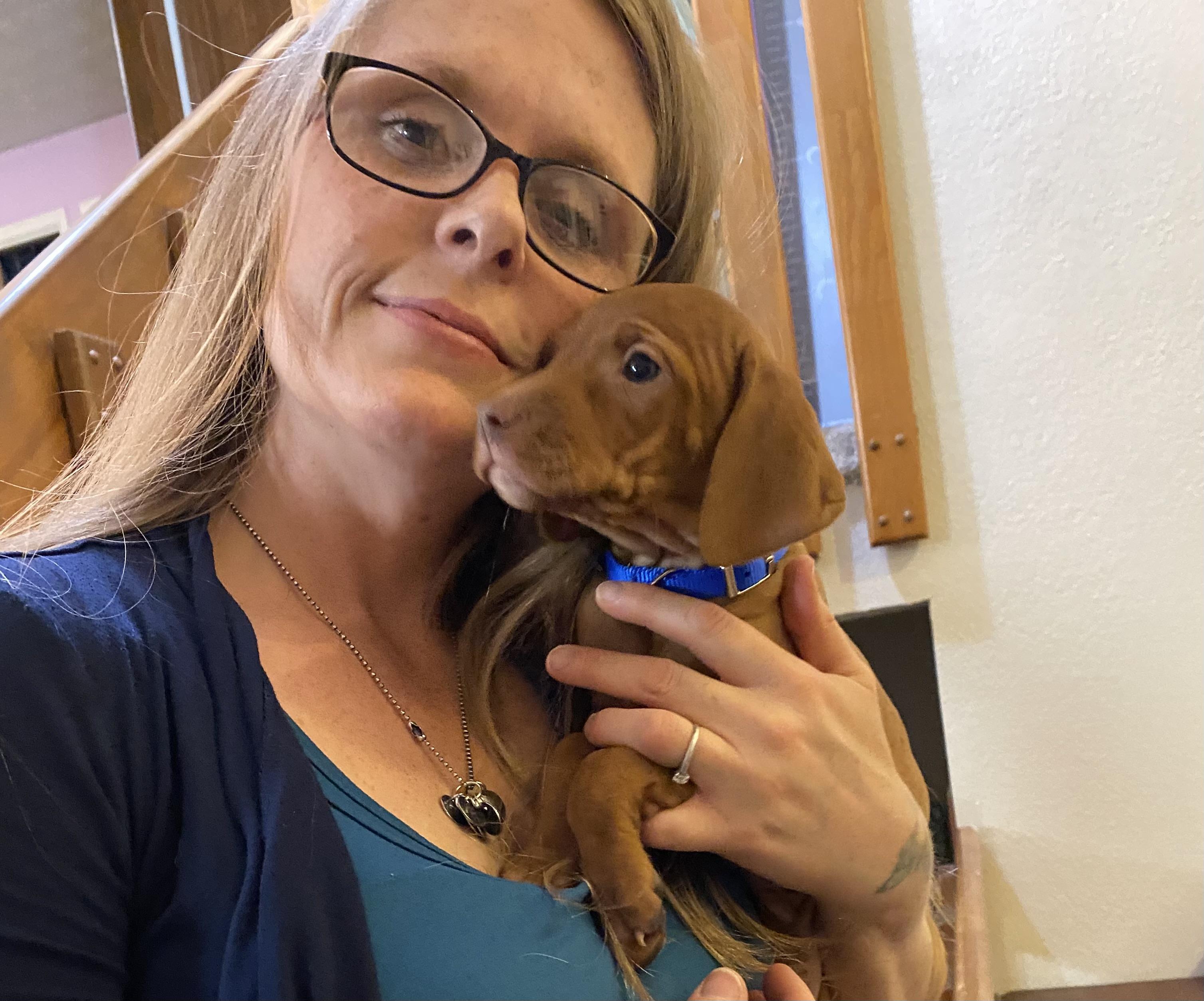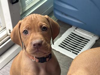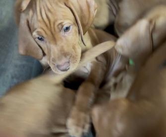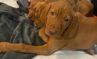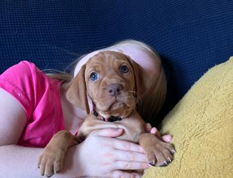 We couldn't be happier with our new vizsla, Cailey. Elisha was great to work with, texted photos, videos, and updates often; and allowed us to visit the whole litter at six weeks. Ours is happy, healthy, and with a great start on socialization. Within a week she was crate trained, sleeping through the night, going for short hikes with us and our older dog, playing in a puppy pool and wading shallow creeks. She's adjusted nicely to her new home. It's a lot of work to care for a litter of new puppies, and get them all off to a great start. We appreciate all the effort that Elisha clearly put in.