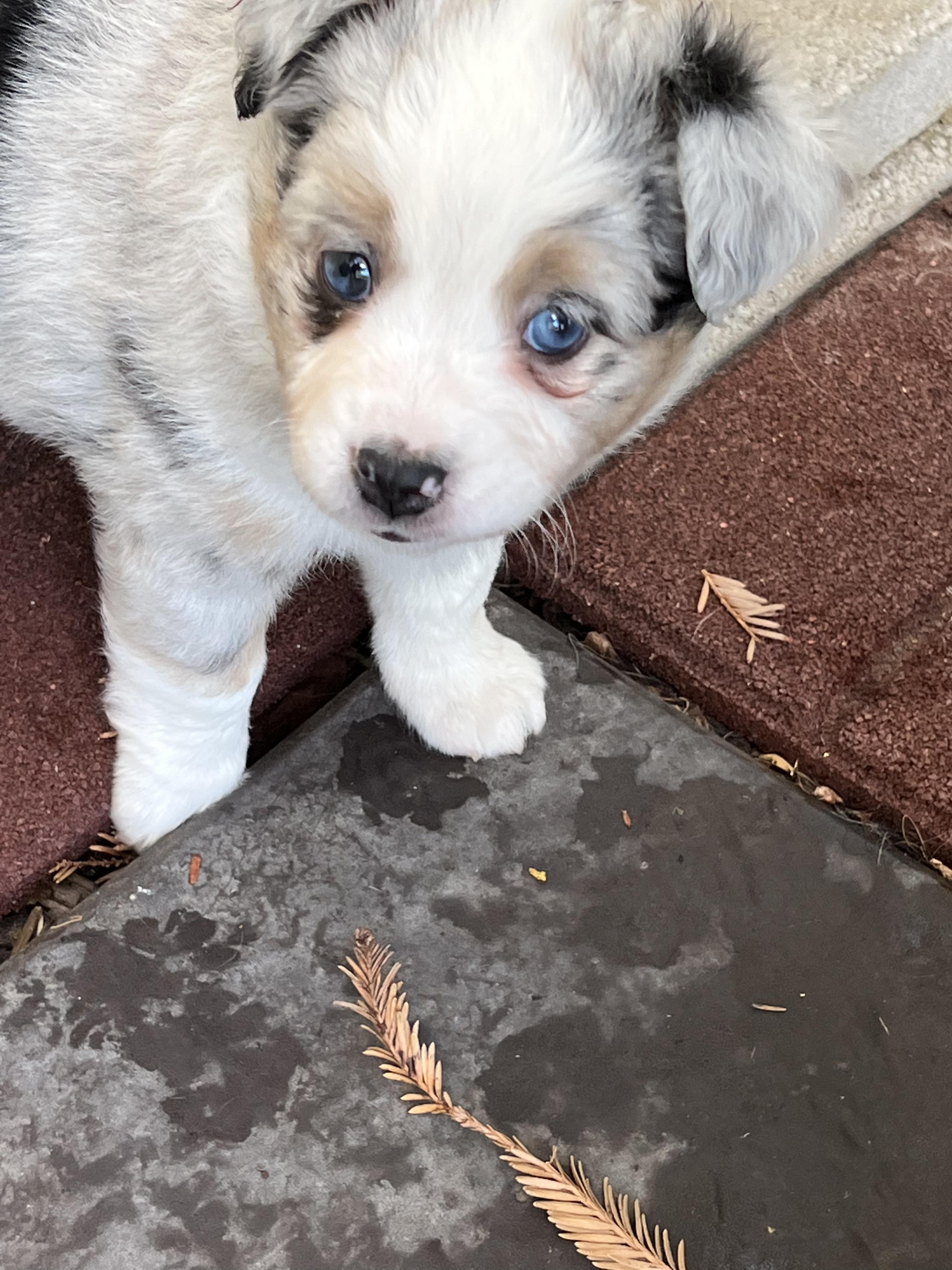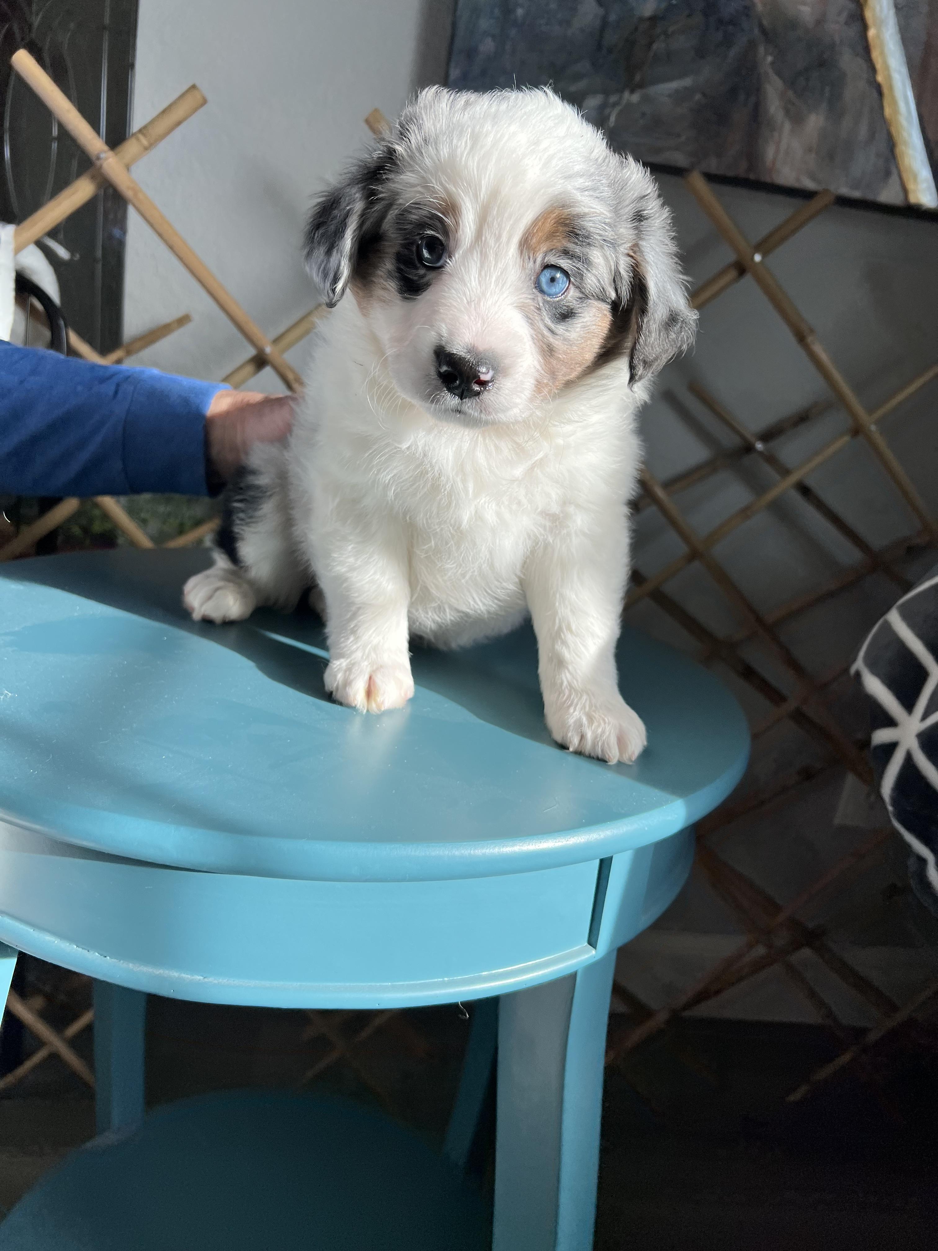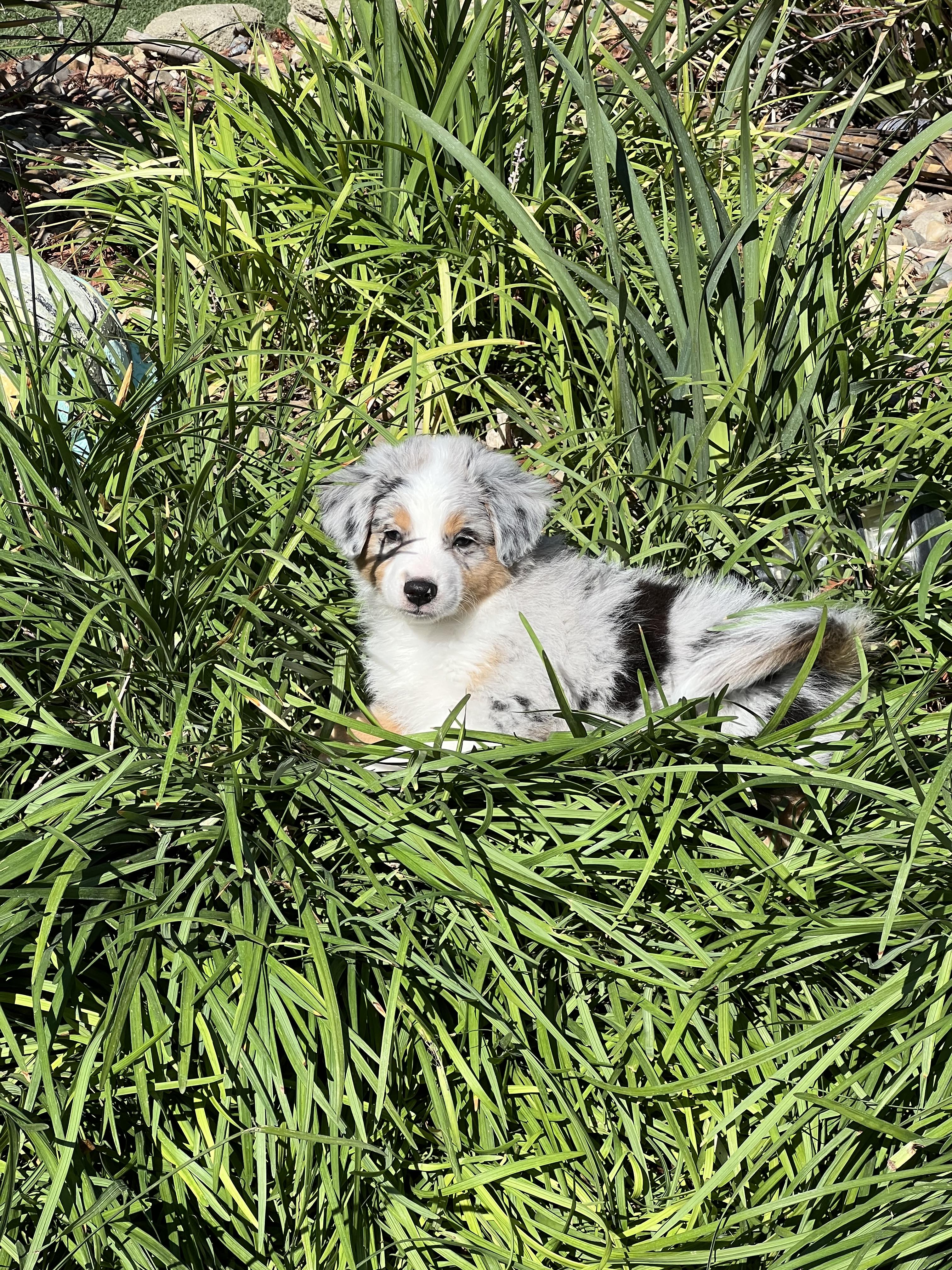 Our puppies include blue merle, black tri, red tri, and red merle. Colors will vary depending on the parent dogs.