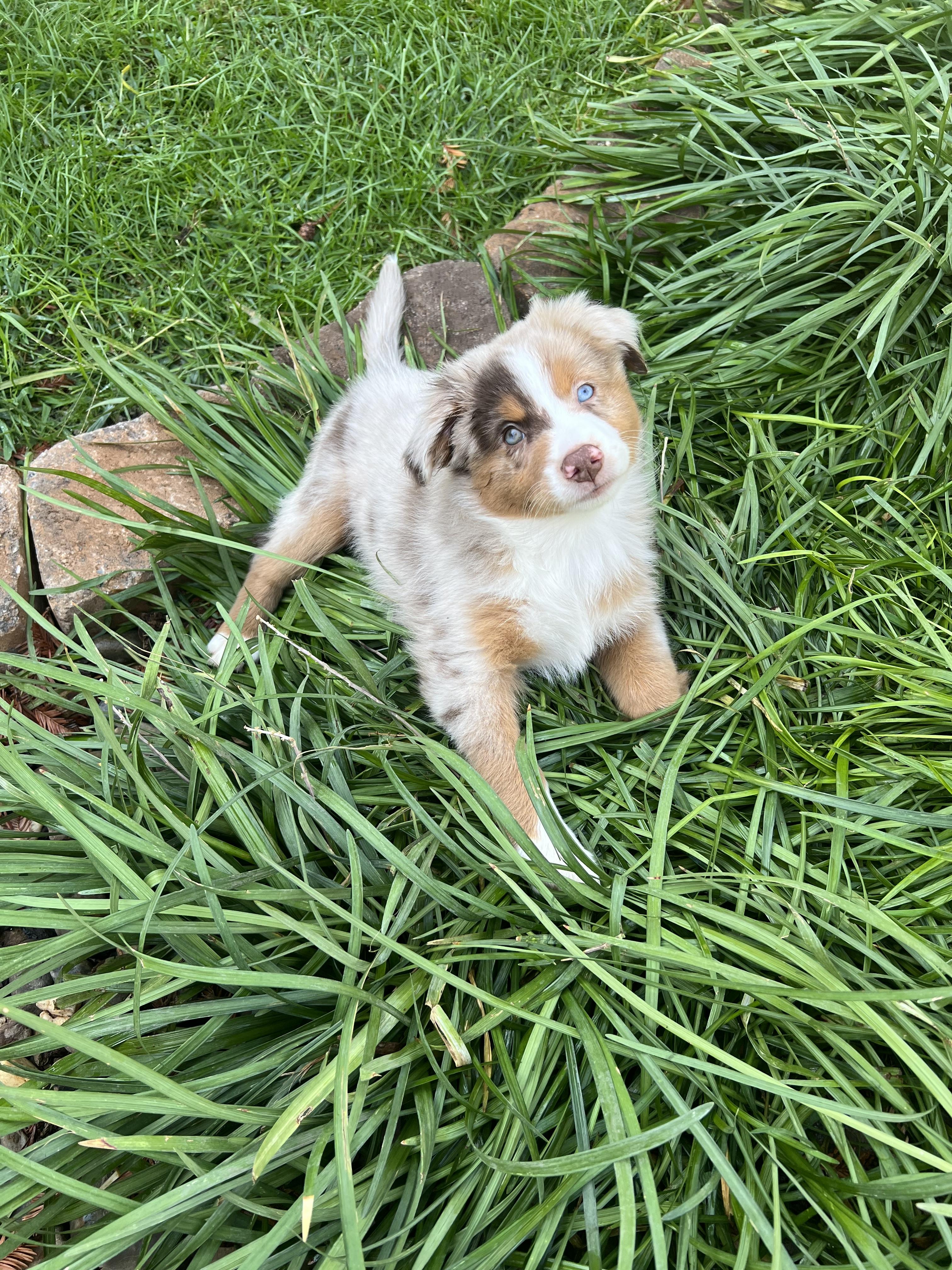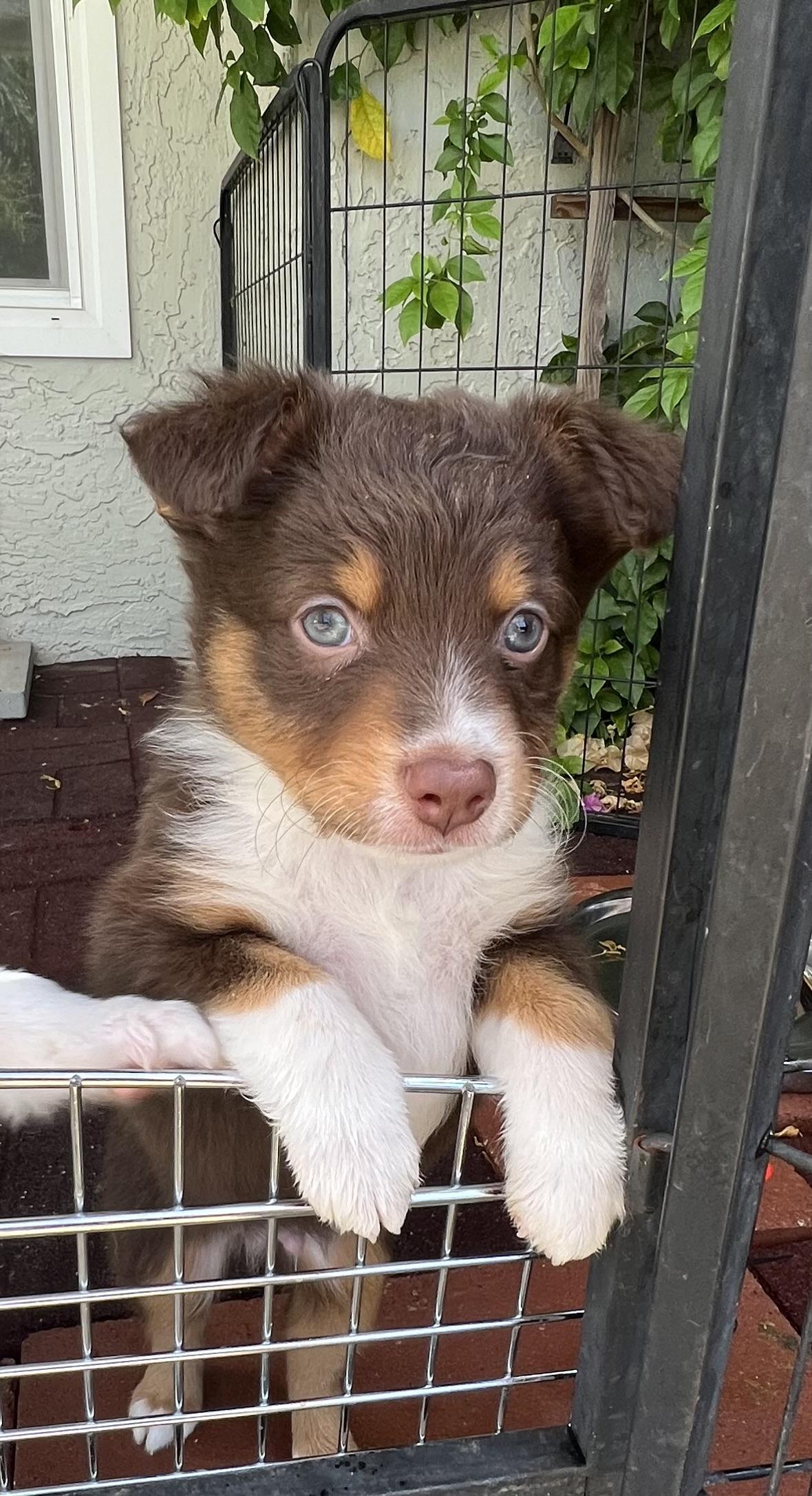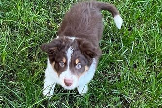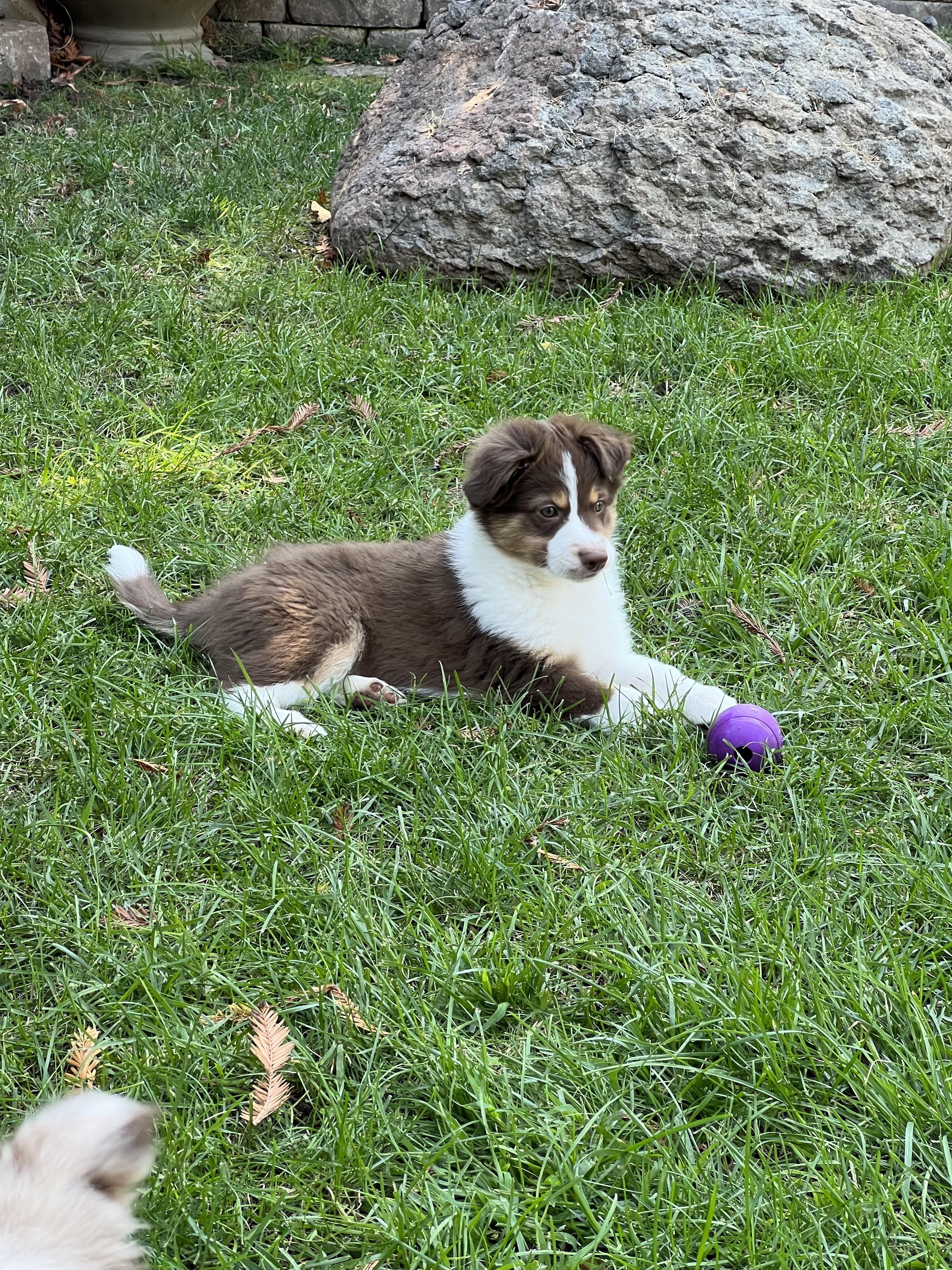 Our puppies include blue merle, black tri, red tri, and red merle. Colors will vary depending on the parent dogs.