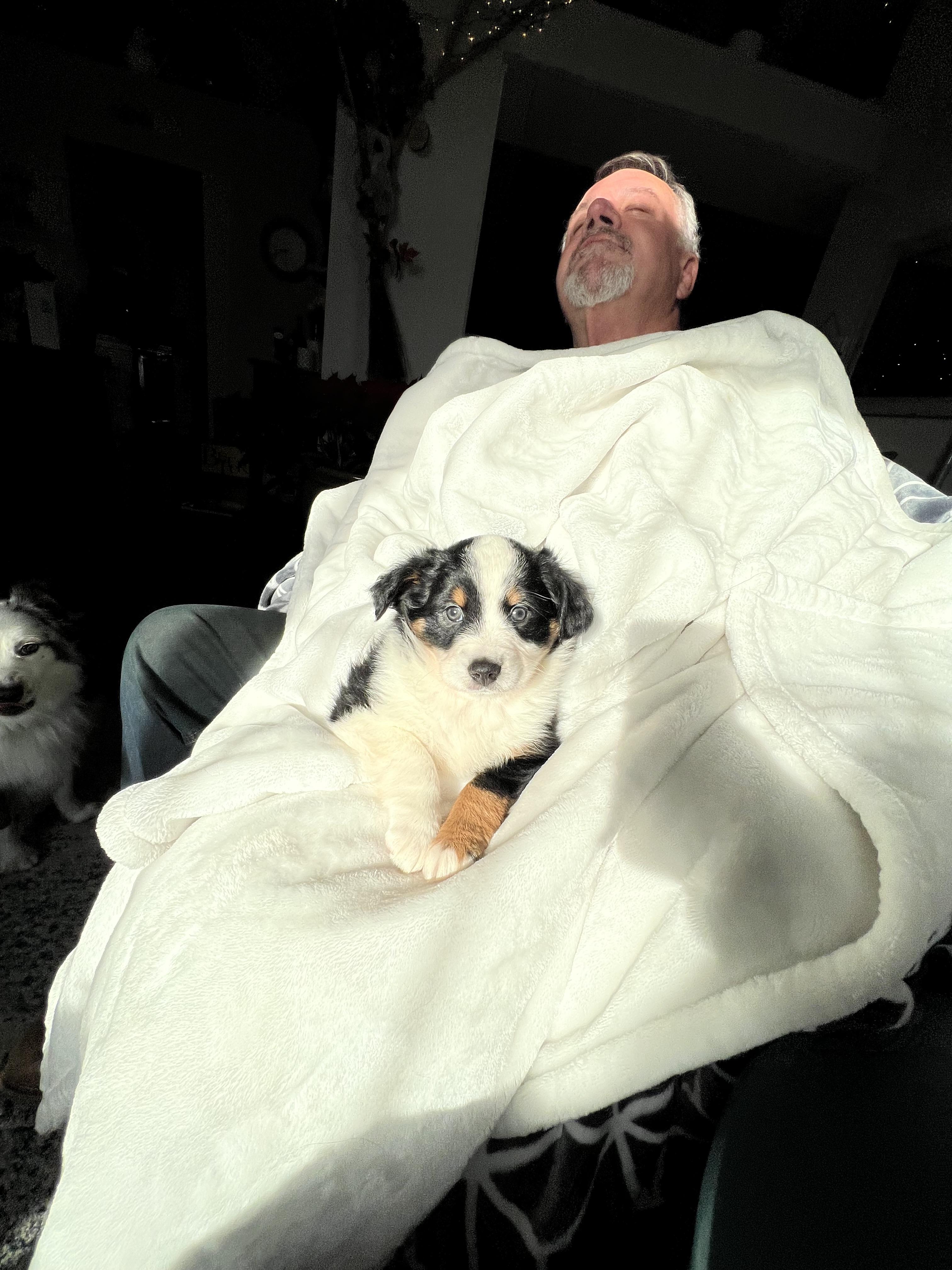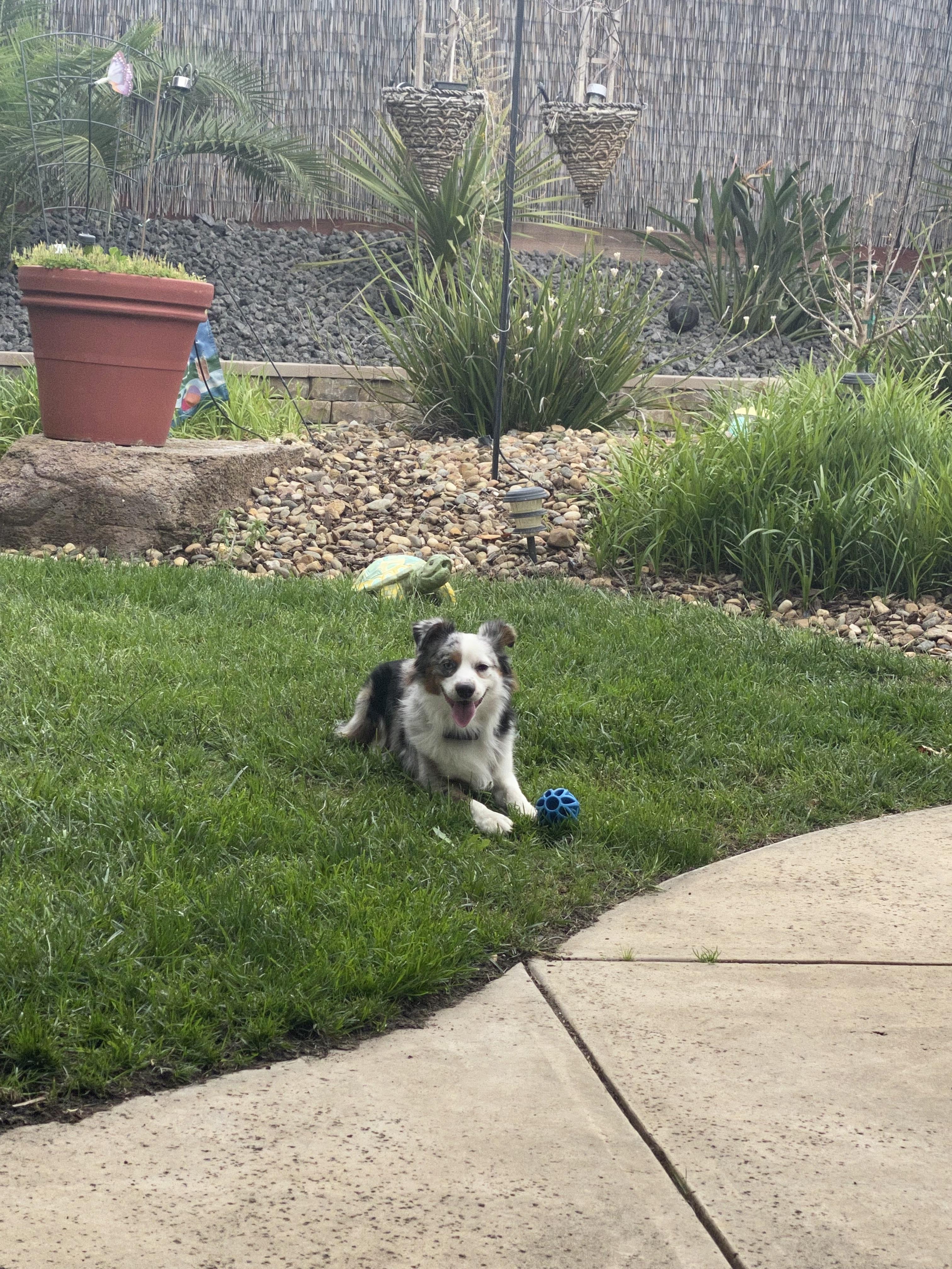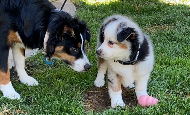 I'm Pamela A., the breeder behind Amberwood DD Aussies located in Vacaville, CA. We are considered Hobby Breeders. Our fur babies are ASDR registered, parents DNA cleared, quality Colorado bloodlines and come with a 3 generation pedigree. This is our first litter from Sugar, 3 years old, 25lb mini Black Tri and our Sire-Jack is nearly 1.5 years old, 25lb Red Tri. We love our dogs and just had to share there purebred beauty, smarts, temperament, agility and so playful loving ways with you.