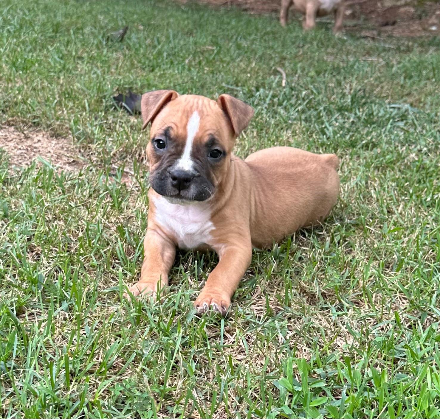 I am quick to remove any dog in my program that exhibits any type of temperament issues, such as real dog aggression or serious shyness. Amstaffs have one job in this world now; to be a great family pet.