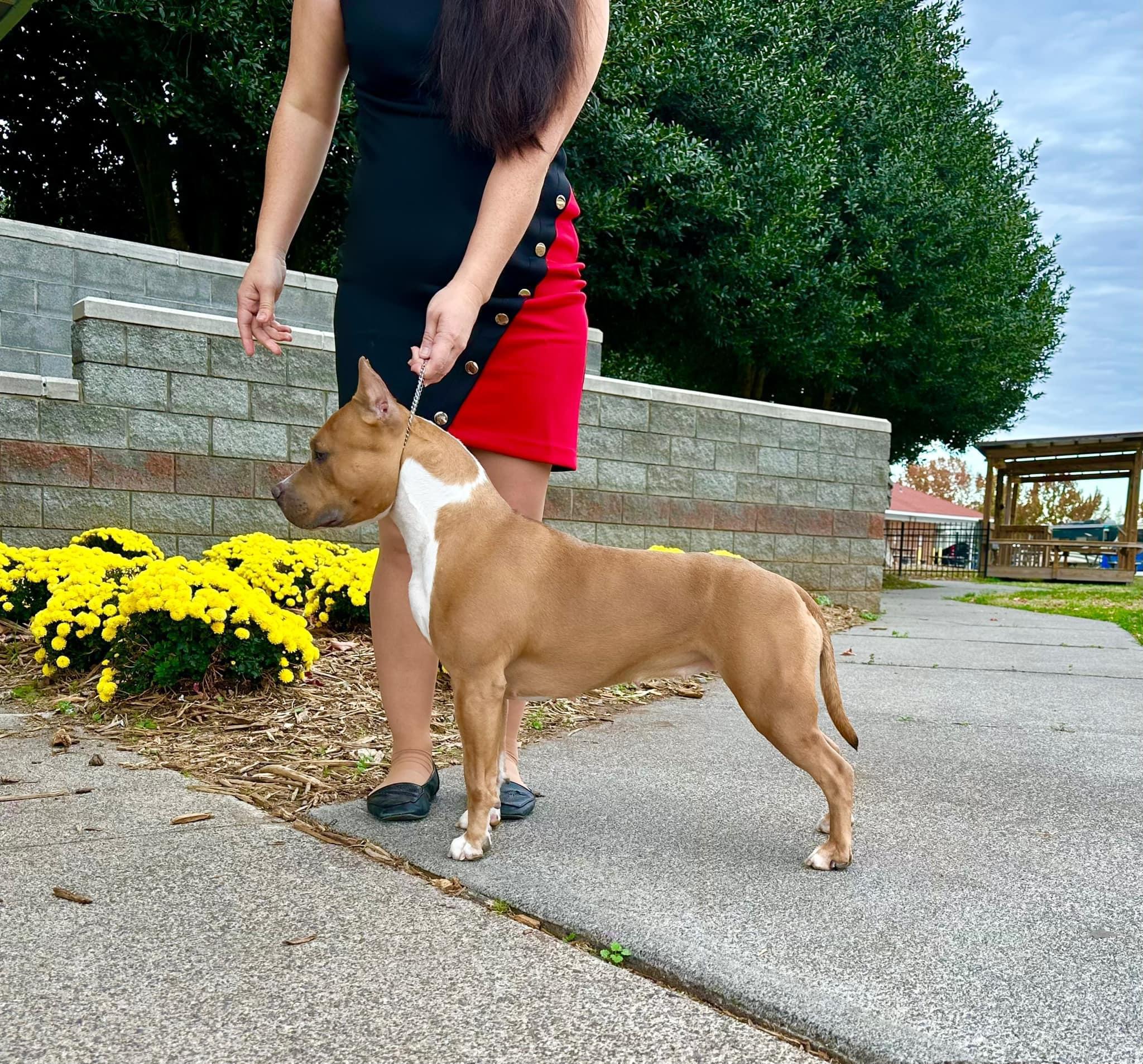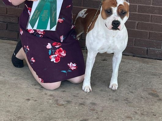 I'm Jennifer S., the breeder behind Ambition Amstaffs located in Marietta, GA. Every litter we produce is with the intention of creating our next great show dog. We take meticulous care in matching pedigrees and temperaments to produce spectacular puppies. We also give the mother and puppies a RAW diet to give the absolute best start in life.