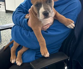 Rose is a female American Staffordshire Terrier. Carefully selected as a great representative of her breed, Jennifer decided to make her part of their program. Jennifer has passed Good Dog’s screening process, which involved a review of their breeding practices, environment, and the mental and physical health of their dogs.