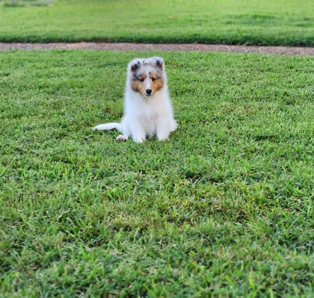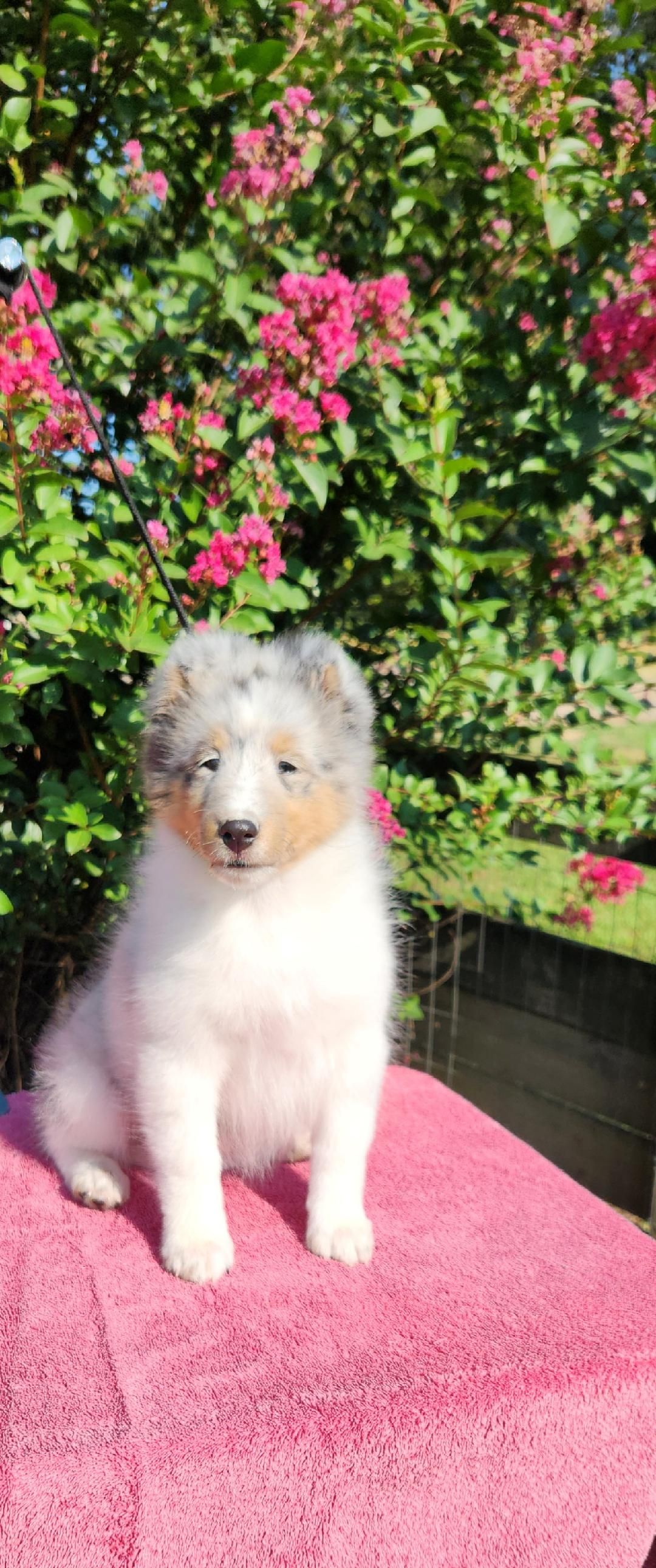 Our puppies include blue merle and white, blue merle white and tan, black white and tan, and black and white. Colors will vary depending on the parent dogs.