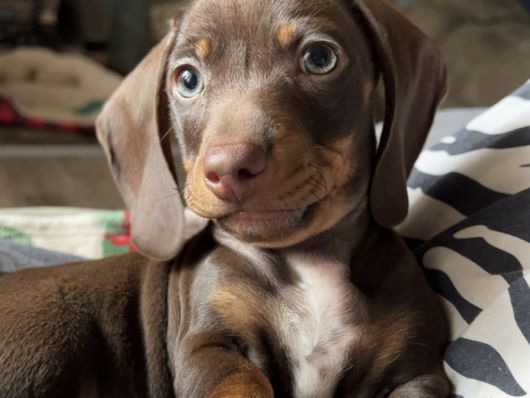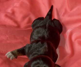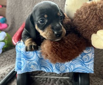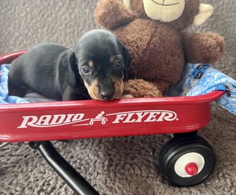 Our puppies include chocolate and tan and black and tan. Colors will vary depending on the parent dogs.
