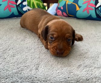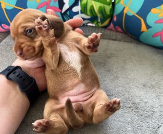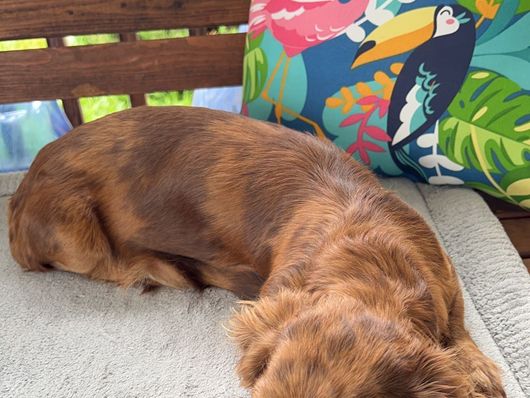 Roxy is a female Dachshund. Carefully selected as a great representative of her breed, J decided to make her part of their program. J has passed Good Dog’s screening process, which involved a review of their breeding practices, environment, and the mental and physical health of their dogs.