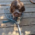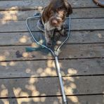 And then there was one. This lil guy is getting all the love and attention now. Barney is a real catch, as you can see, he loves this fishing net. He's hoping you'll scoop him up for love and adventures galore. This good boy is eager and ready to train.