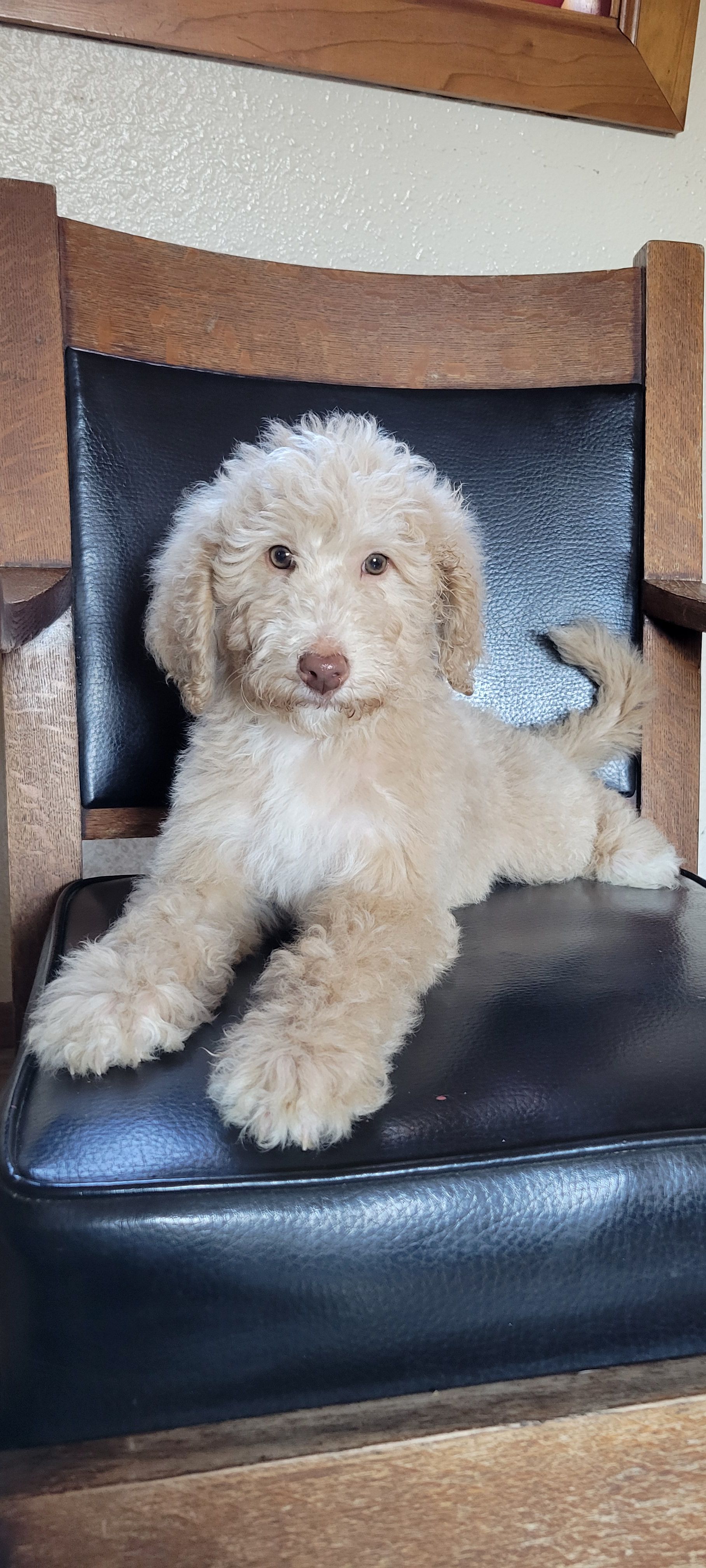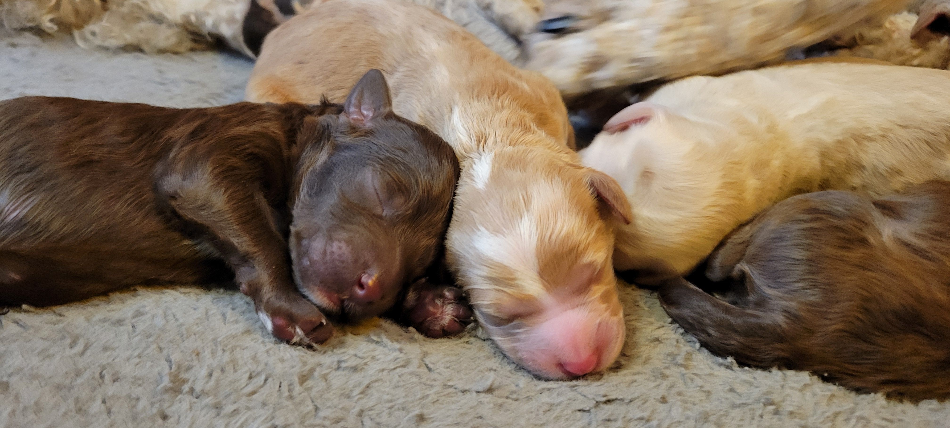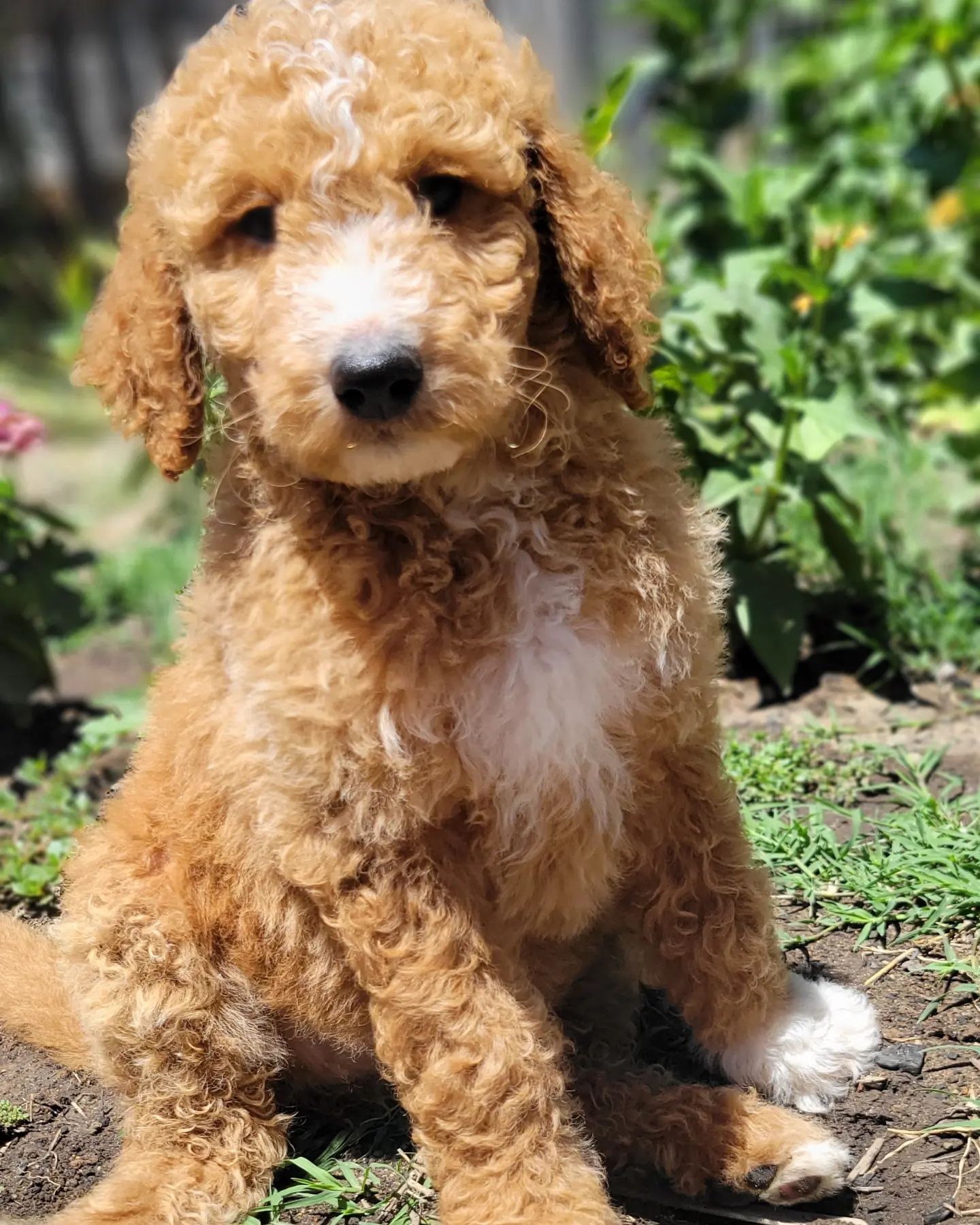 Goldendoodle puppies include cream, apricot, red, and parti. Colors will vary depending on the parent dogs.