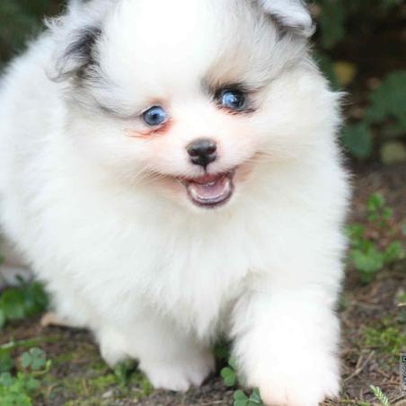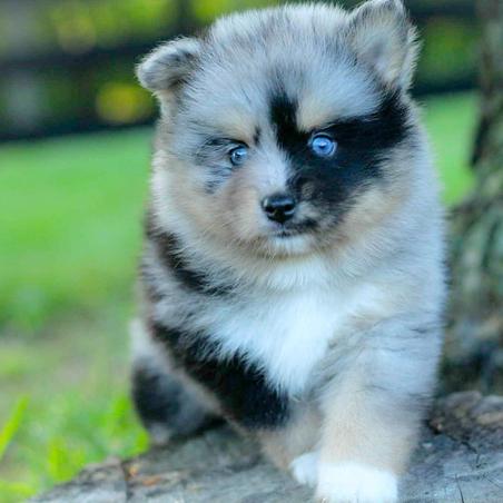 Our Pomsky puppies include wolf sable, gray and white, black and white, chocolate, and merle. Pomeranian puppies include blue, tri-colored, chocolate merle, and blue merle. Colors will vary depending on the parent dogs.