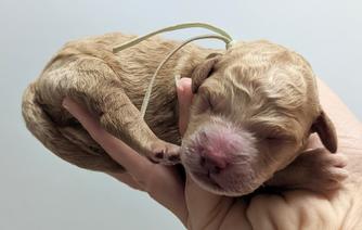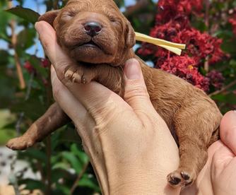 Alice is a female Goldendoodle. Carefully selected as a great representative of her breed, Amy decided to make her part of their program. Amy has passed Good Dog’s screening process, which involved a review of their breeding practices, environment, and the mental and physical health of their dogs.
