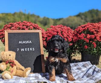 Lexi is a 37lb multigenerational Bernedoodle who absolutely loves her job as being a mama. She is good natured and loves to be outdoors.
