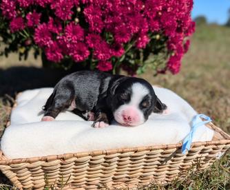 Our puppies are tri-color. Colors will vary depending on the parent dogs.