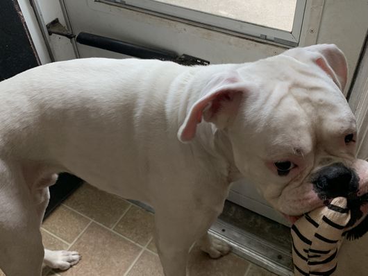 Emie is a female Boxer. Carefully selected as a great representative of her breed, Amy decided to make her part of their program. Amy has passed Good Dog’s screening process, which involved a review of their breeding practices, environment, and the mental and physical health of their dogs.