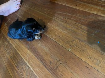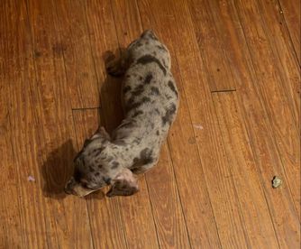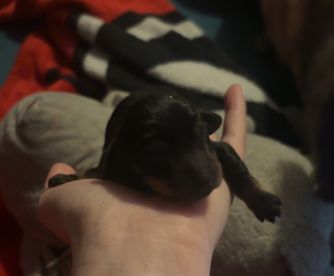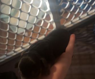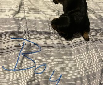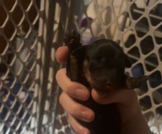 Male, Black and Tan with Piebald spot. Active and very Muscular. Raised in home and is very loved by all.