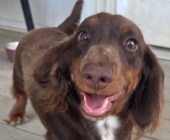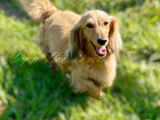 We brought Sunny (Cherry) home a little over a month ago and she has been absolutely precious! She’s the perfect puppy with the best, spunkiest personally and she’s such a cutie. I brought Sunny all the way home to Minnesota, and have absolutely no regrets going through this experience with Amy and her family. If we get another dachshund in the future, I would 100% do it all again