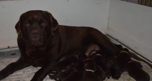 Our puppies are chocolate. Colors will vary depending on the parent dogs.