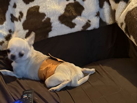 Lila is a female Chihuahua. Carefully selected as a great representative of her breed, Ana decided to make her part of their program. Ana has passed Good Dog’s screening process, which involved a review of their breeding practices, environment, and the mental and physical health of their dogs.