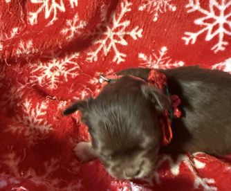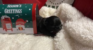 The anticipated day of October 13th, finally arrived. I literally had tears of joy when I saw the flight nanny come down the escalator with the carrier of my two little pups, and a lovely care package from Ana. The transition was as smooth as could be expected. I am watching the two little ones play in their "pack - n- play" while I write this review. Choco and Osita have already brought much joy to our home. This could not have happened without Ana. If you are looking to get a new puppy, I highly recommend that you work with Ana. You will not be disappointed. Rather, you will be over-joyed. Thank you, Ana! Warm regards, Amalia