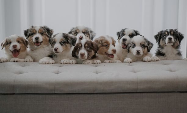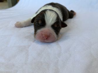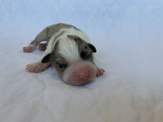 Our puppies include red merle and blue merle. Colors will vary depending on the parent dogs.