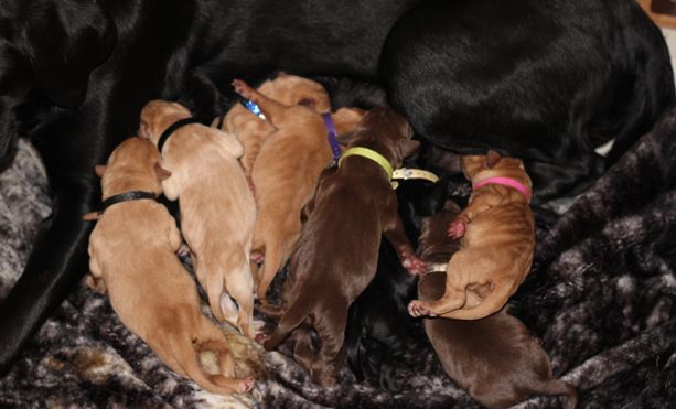 Our puppies include chocolate and yellow. Colors will vary depending on the parent dogs.