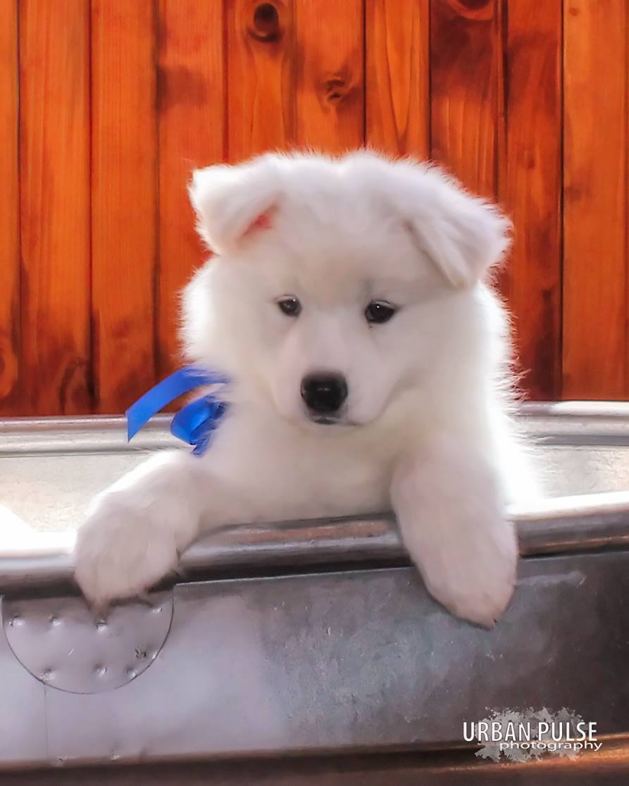 Chrome is a male Samoyed. Carefully selected as a great representative of his breed, Kimberly decided to make him part of their program. Kimberly has passed Good Dog’s screening process, which involved a review of their breeding practices, environment, and the mental and physical health of their dogs.