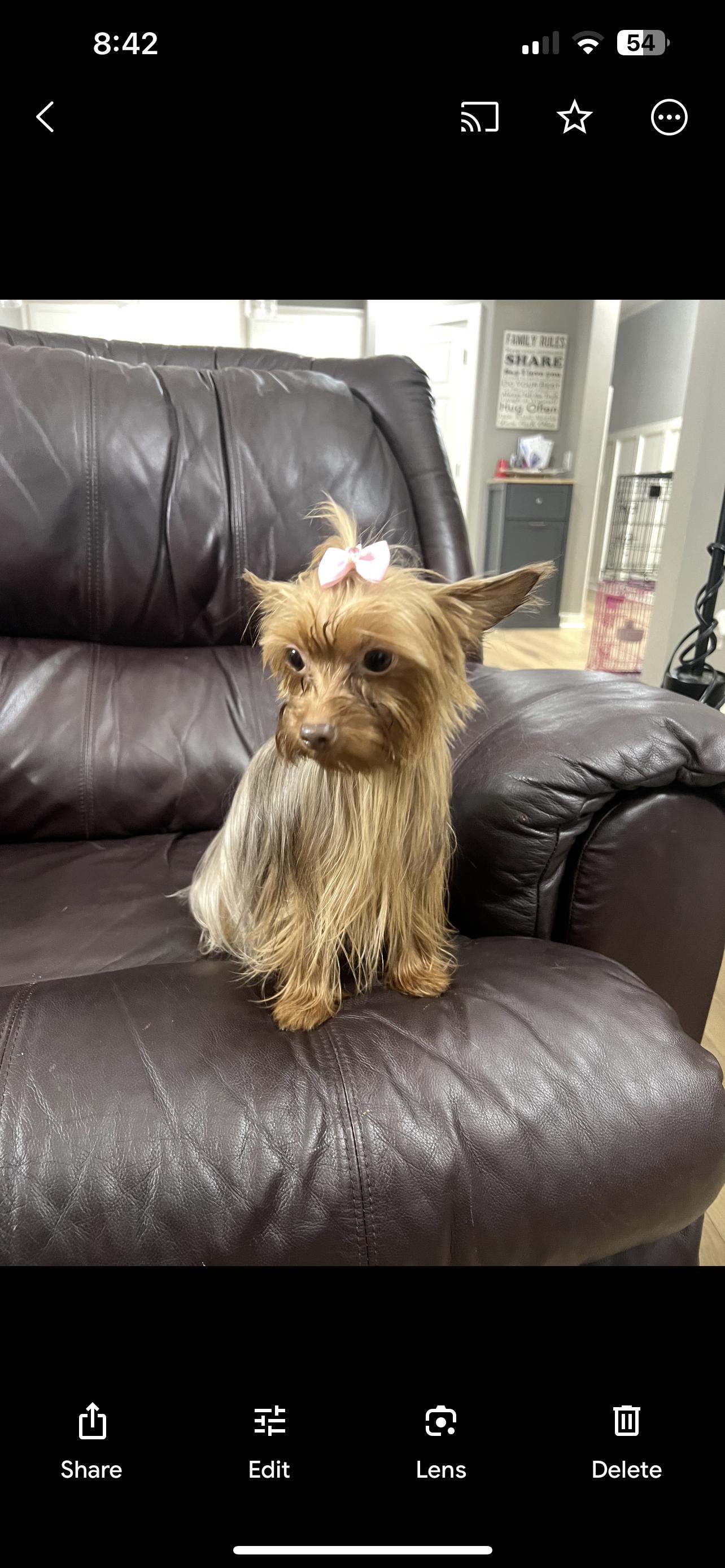 Samson is a male Yorkshire Terrier. Carefully selected as a great representative of his breed, Rhonda decided to make him part of their program. Rhonda has passed Good Dog’s screening process, which involved a review of their breeding practices, environment, and the mental and physical health of their dogs.
