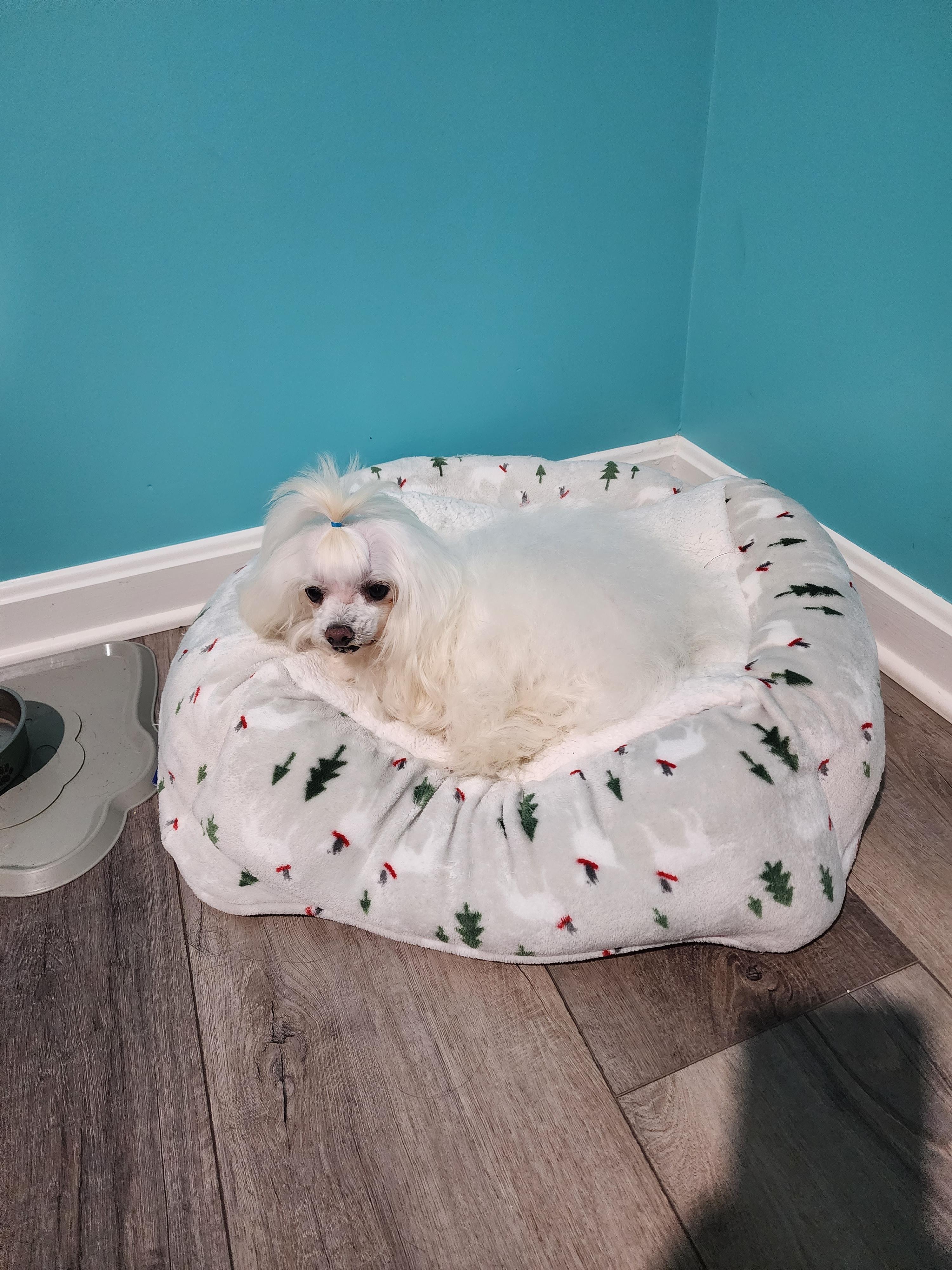 Angelito is a male Maltese. Carefully selected as a great representative of his breed, Andrea decided to make him part of their program. Andrea has passed Good Dog’s screening process, which involved a review of their breeding practices, environment, and the mental and physical health of their dogs.