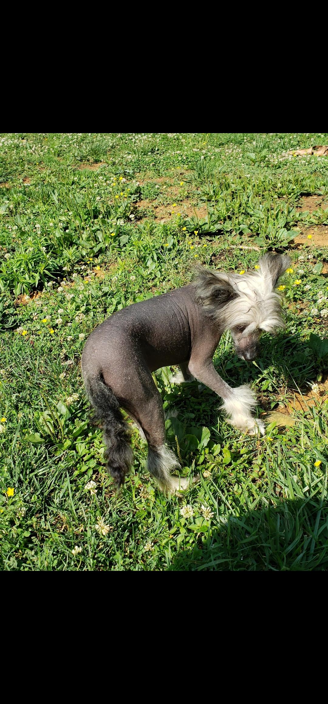 Our beautiful Piper is a 3-year-old Chinese Crested and the heart of our program. She’s affectionate, playful, and loves to be close to her people. She has a gentle temperament, great with kids, and enjoys spending time outdoors on nice days. Health-tested, AKC registered, and well cared for — she’s a wonderful example of the breed, both in looks and personality.