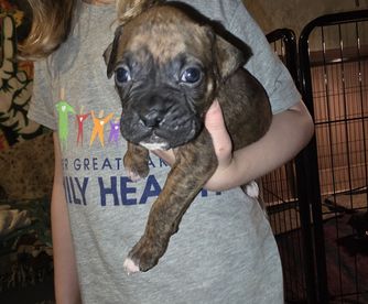 I'm Jami A., the breeder behind Andrus Family Boxers located in Caspian, MI. Our Boxer pups are home-raised. We put a lot of care into socializing them so they can transition easily into their new lives. We work hard to breed exemplary Boxers that are well taken care of from day one and are prepared to excel in loving and caring homes. We love our dogs and puppies, and we strive to place each pup in a home suited to their temperament and ability. Raised with our children and rescue cats.