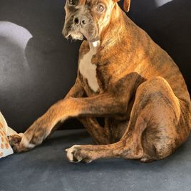Oakley is a female Boxer. Carefully selected as a great representative of her breed, Jami decided to make her part of their program. Jami has passed Good Dog’s screening process, which involved a review of their breeding practices, environment, and the mental and physical health of their dogs.