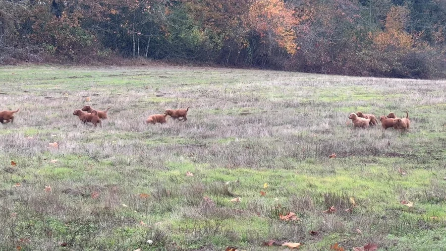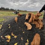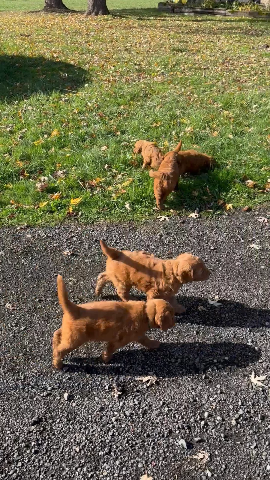 Puppies out for a morning walk and king of the chip pile games.