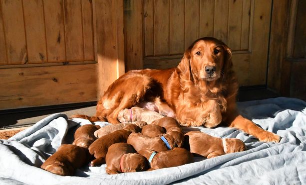 Poppy is the sweetest dog ever. Gental, kind, attentive, and loved by all who meet her. She is an excellent mom; I haven't seen any better. She responds immediately to any cry from her pups and makes sure they are okay.
