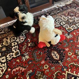 He is very spirited, shows a lot of affection but also very mouthy. He already knows two commands, "come" and "sit" and knows to use the dog door.