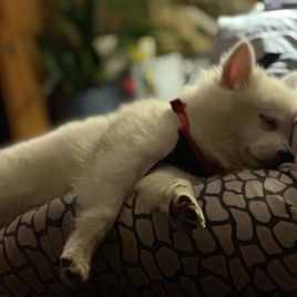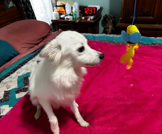 We had a wonderful experience with Darlene at Angelfrost Puppies. We received our little female puppy a week ago and she is doing beautifully. She desperately wants to play with my other American Eskimo and he is slowly warming up to her. She loves to run and play and is very affectionate. I would highly recommend this breeder for anyone looking for an American Eskimo dog. Darlene was very responsive many times on the phone. I send her pictures of little Marley (our name for her) frequently. I will post photos shortly.