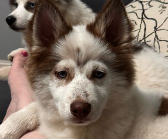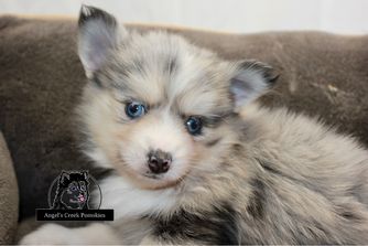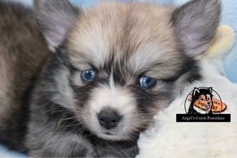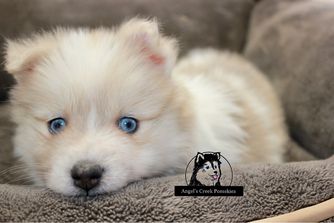 I'm Megan A., the breeder behind Angel's Creek Pomskies located in Bolingbrook, IL. Our dogs are bred for the small size and conformation. We focus on having small litters that are raised within our home and only have one litter at a time so that we can focus on the socialization and involvement of each puppy in the litter. We produce happy, healthy pups!
