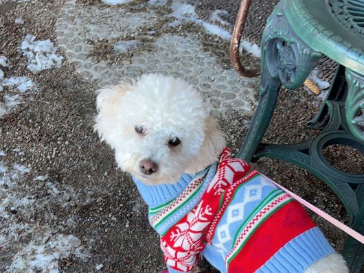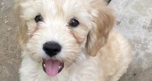 Chloe is an 8lb cream Toy Poodle and truly the best dog ever! She has a sweet and gentle personality that melts hearts wherever she goes. Chloe is happiest when she’s close to her family, whether she’s sitting in our laps, resting by our feet, or chasing her favorite ball.