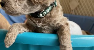 Lucy is a female Goldendoodle. Carefully selected as a great representative of her breed, Donna decided to make her part of their program. Donna has passed Good Dog’s screening process, which involved a review of their breeding practices, environment, and the mental and physical health of their dogs.