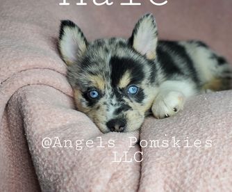 I'm Angel G., the breeder behind Angels Pomskies located in Ramsey County, MN. I take pride in breeding quality puppies and strive to share the healthiest puppies possible. They are raised as family! My breeding program stands out amongst others because of the personal attention I give to every detail of the journey. My dogs work hard, play hard, love hard, and are part of the family. I prepare all of my pups to thrive in their new forever homes!