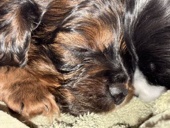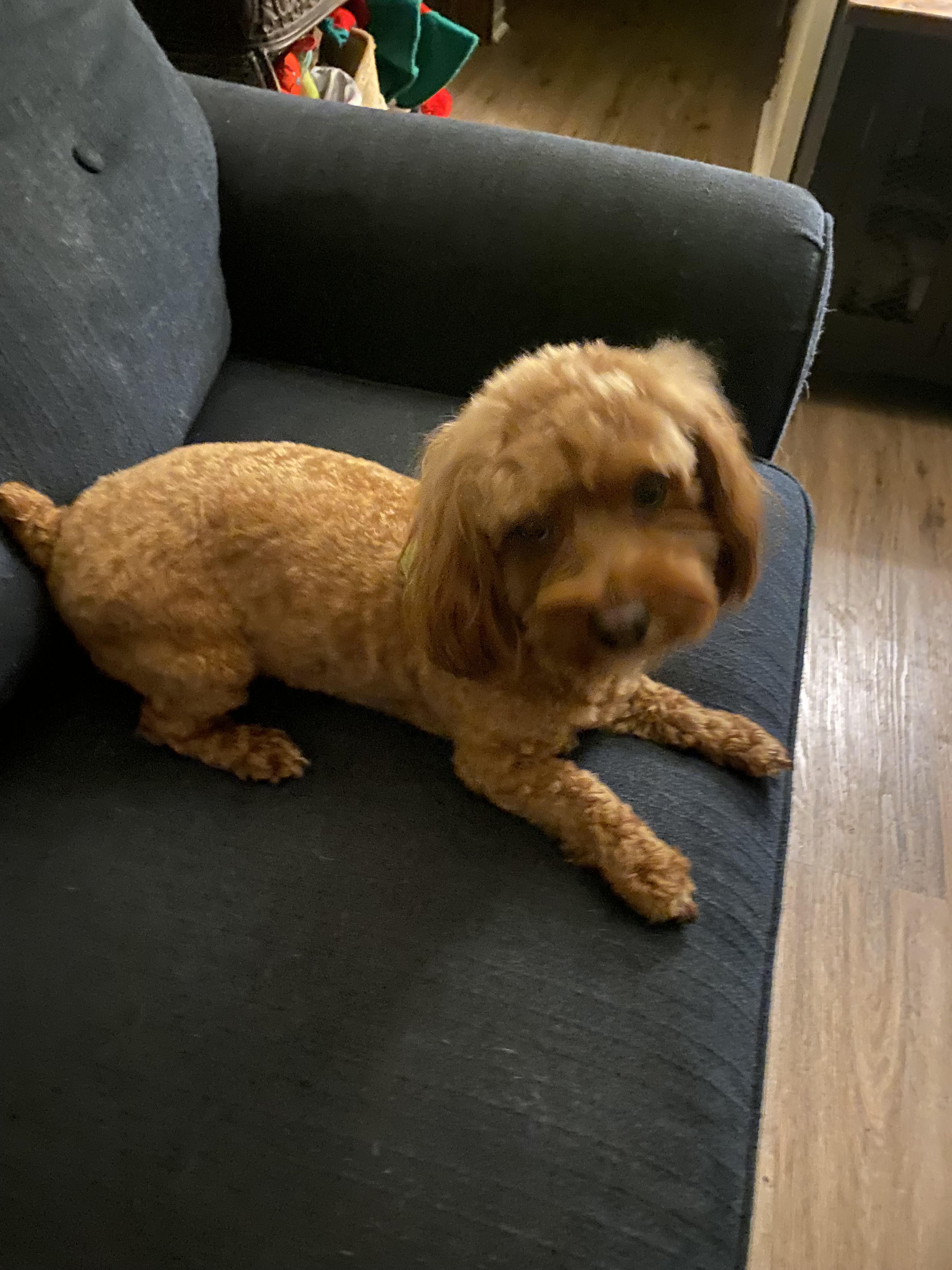 Bernadette is our queen bee of the house. She adores everyone and believes everyone is her friend - so much so that she insists on belly rubs from the first moment she meets someone new. She loves to cuddle often asking to climb into a lap to be held. She is always close at hand and never wanders beyond very direct eye sight. She is a Mini Cockapoo F1 Red color.