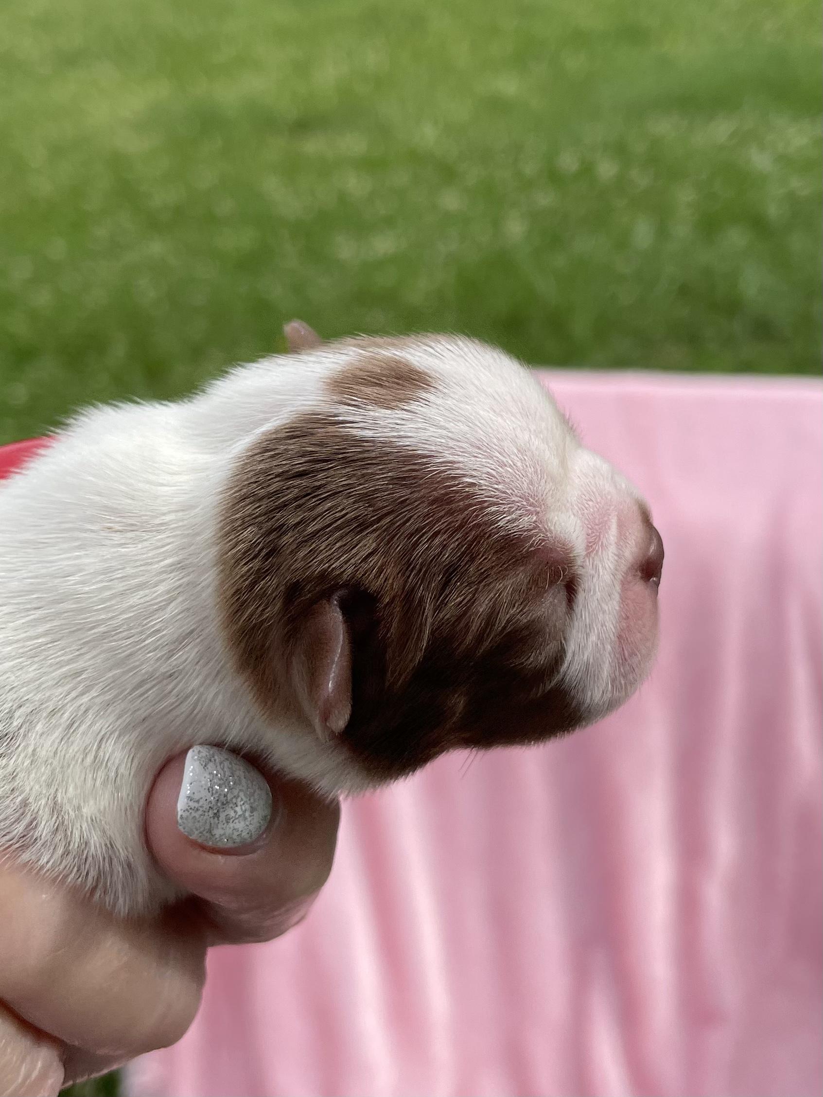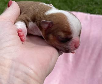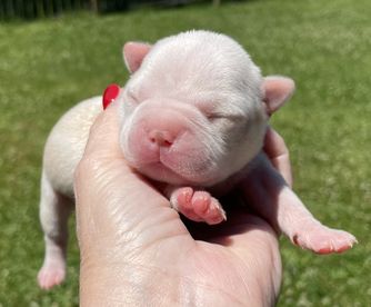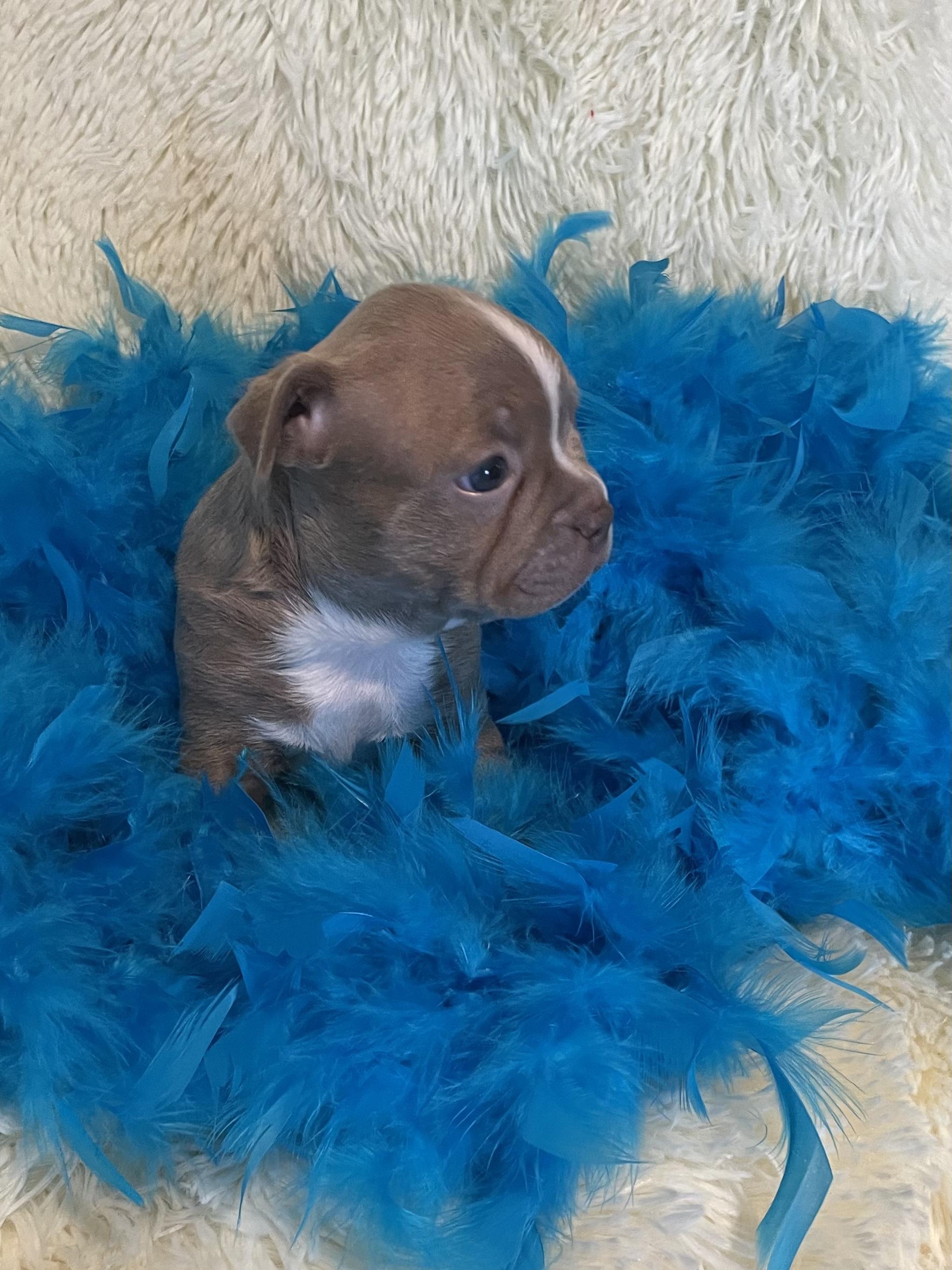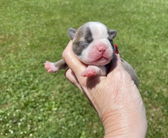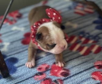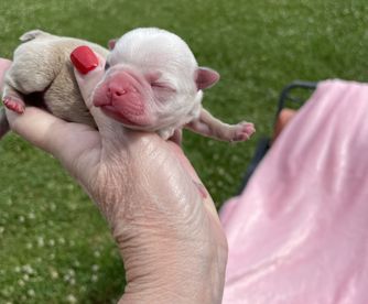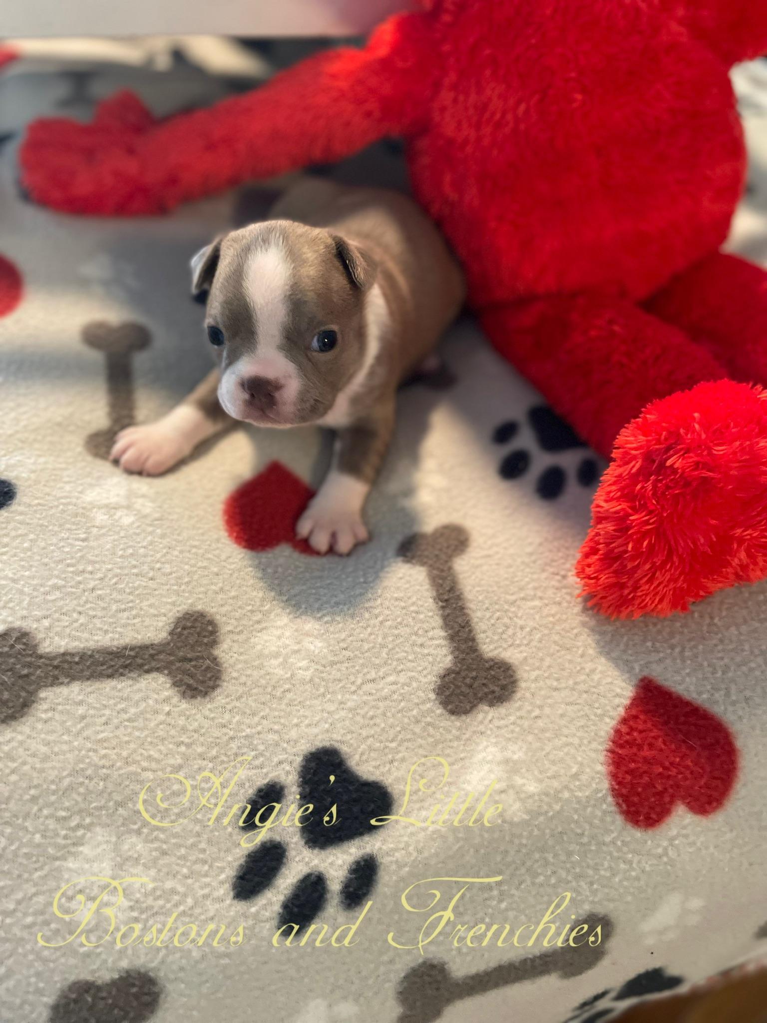 Angie loves the puppies that she breeds and makes sure that the potential owners are the right match. Angie was accommodating and met us halfway to drop off our little girl. We named her Pipsqueak because she’s so tiny, has a sweet yet spunky disposition and gets on well with our other Boston Terrier. Pipsqueak is a great addition to our family. We highly recommend getting your puppies through Angie!